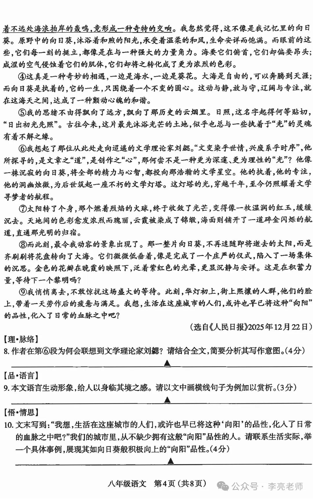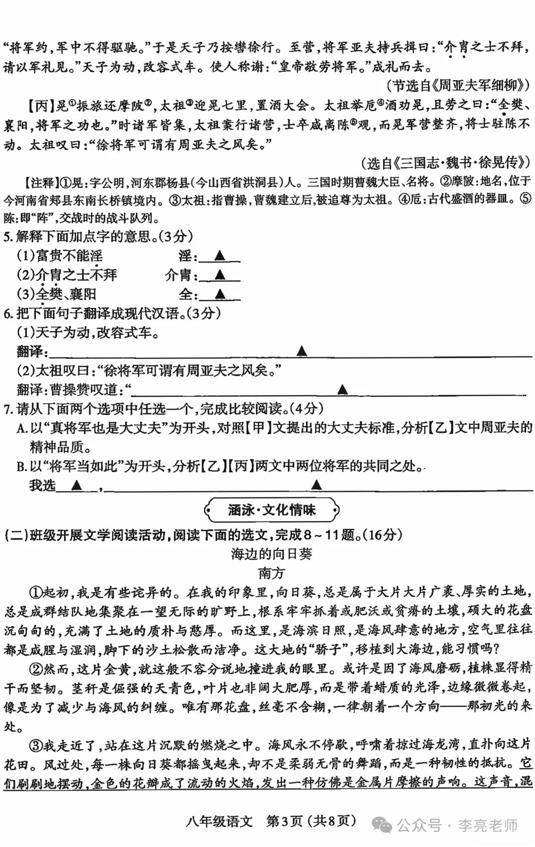 太原2025-2026八上期末学业诊断【语文】试题+答案