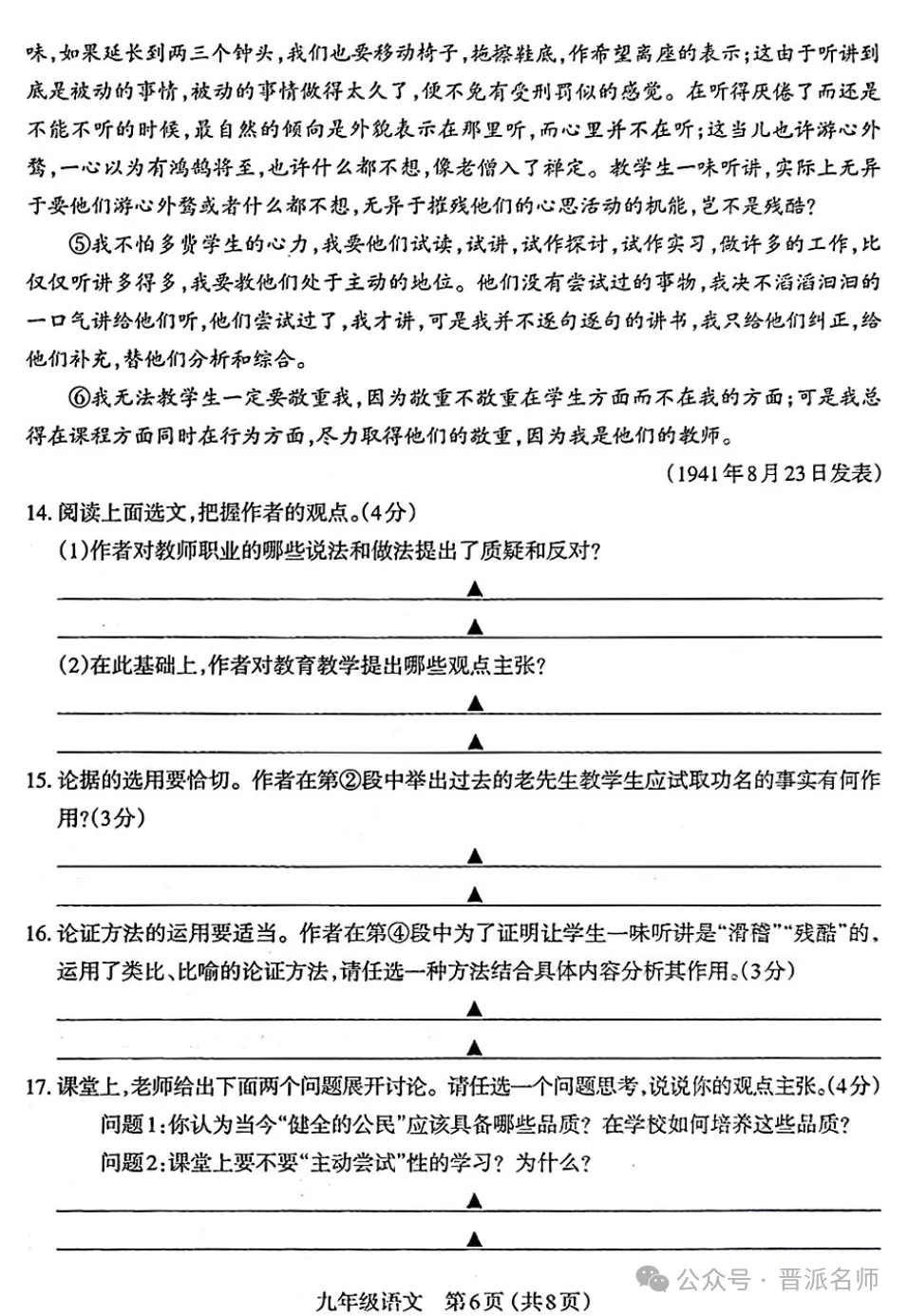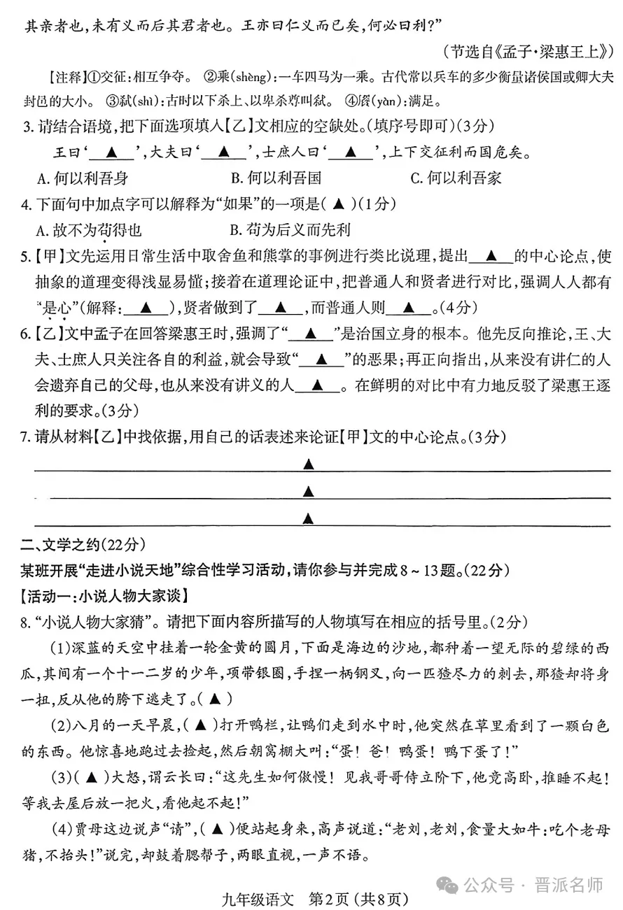 太原2025-2026八上期末学业诊断【语文】试题+答案
