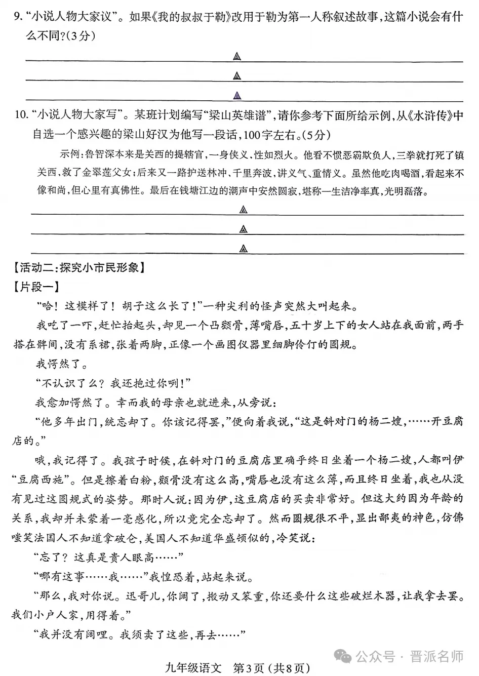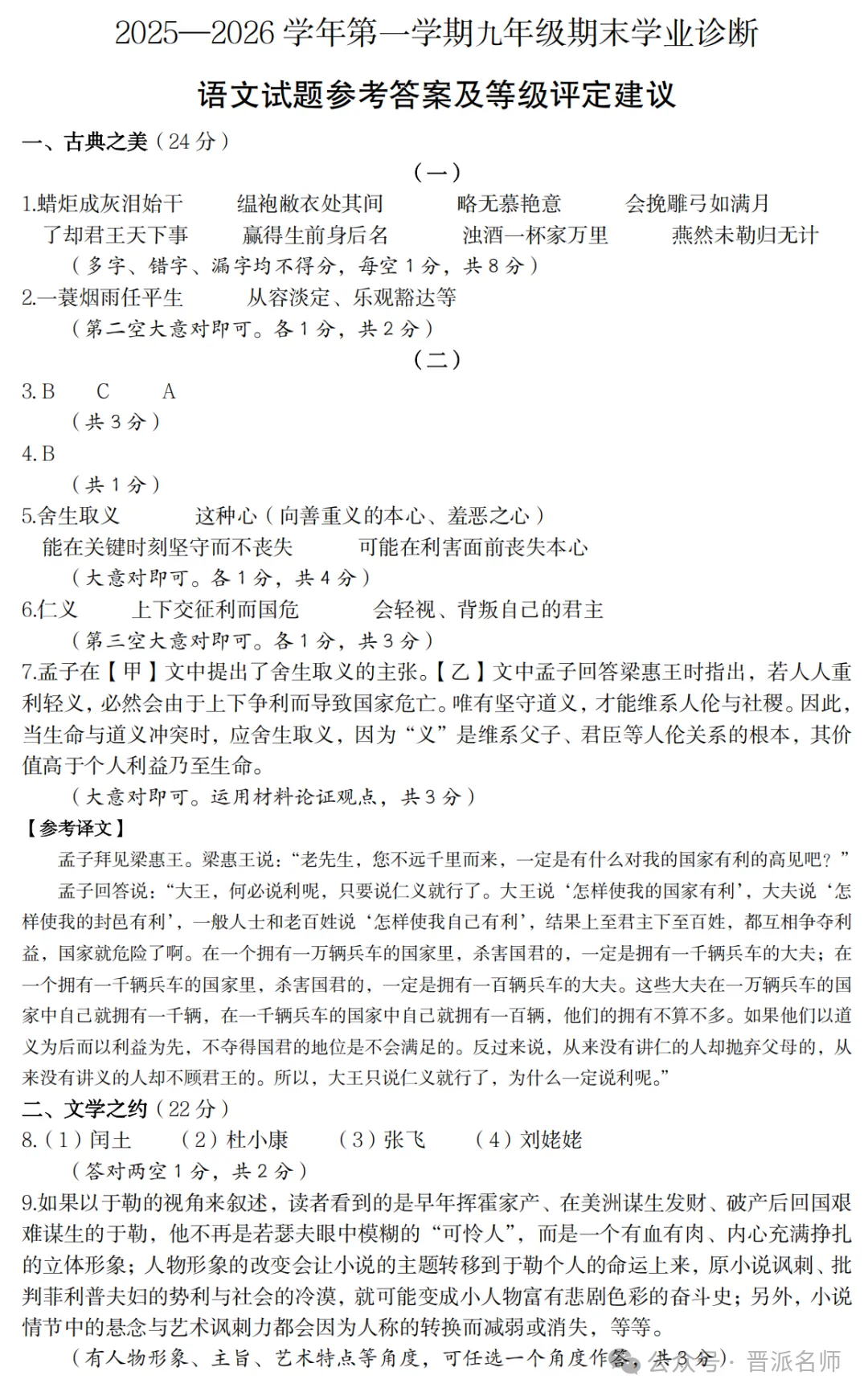 太原2025-2026九上期末学业诊断【语文】试题+答案