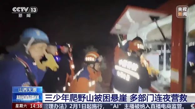 山西太原:3个未成年爬野山被困悬崖