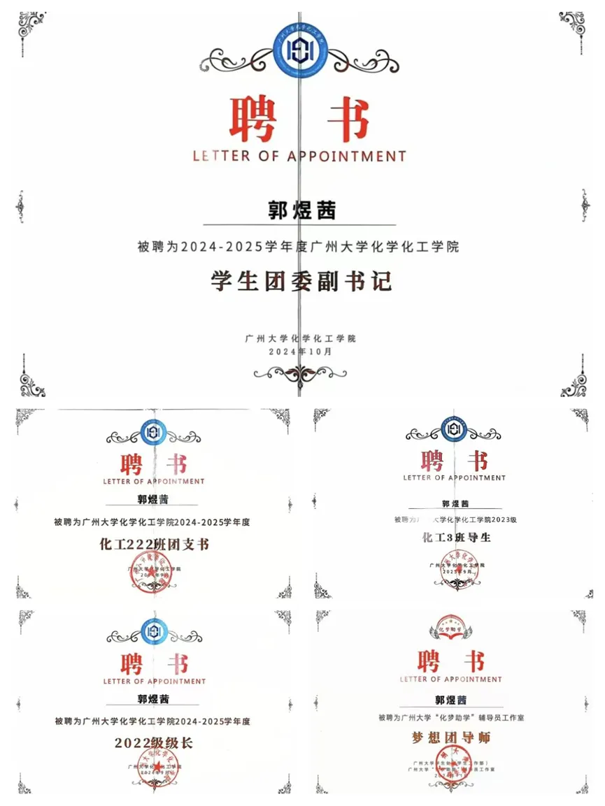郭煜茜担任各种职务的聘书
