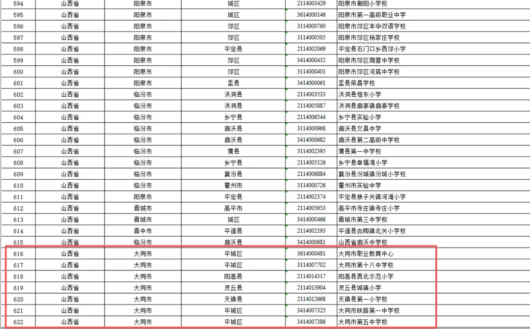 >大同10所学校入选,有你的母校吗?