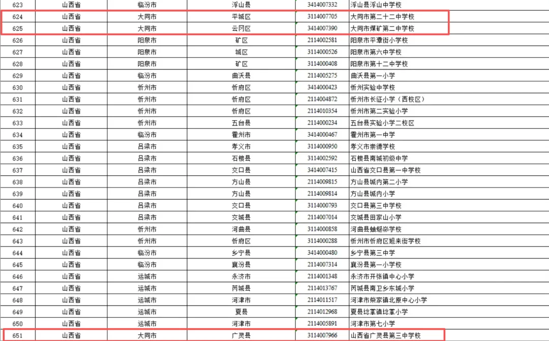 大同10所学校入选,有你的母校吗?