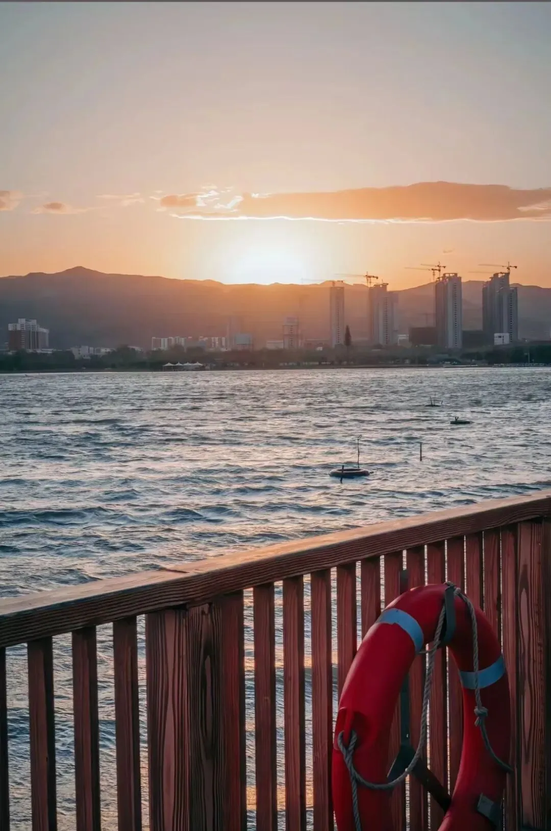 朝赏湖面晨曦微露,暮观岸边烟花绚烂