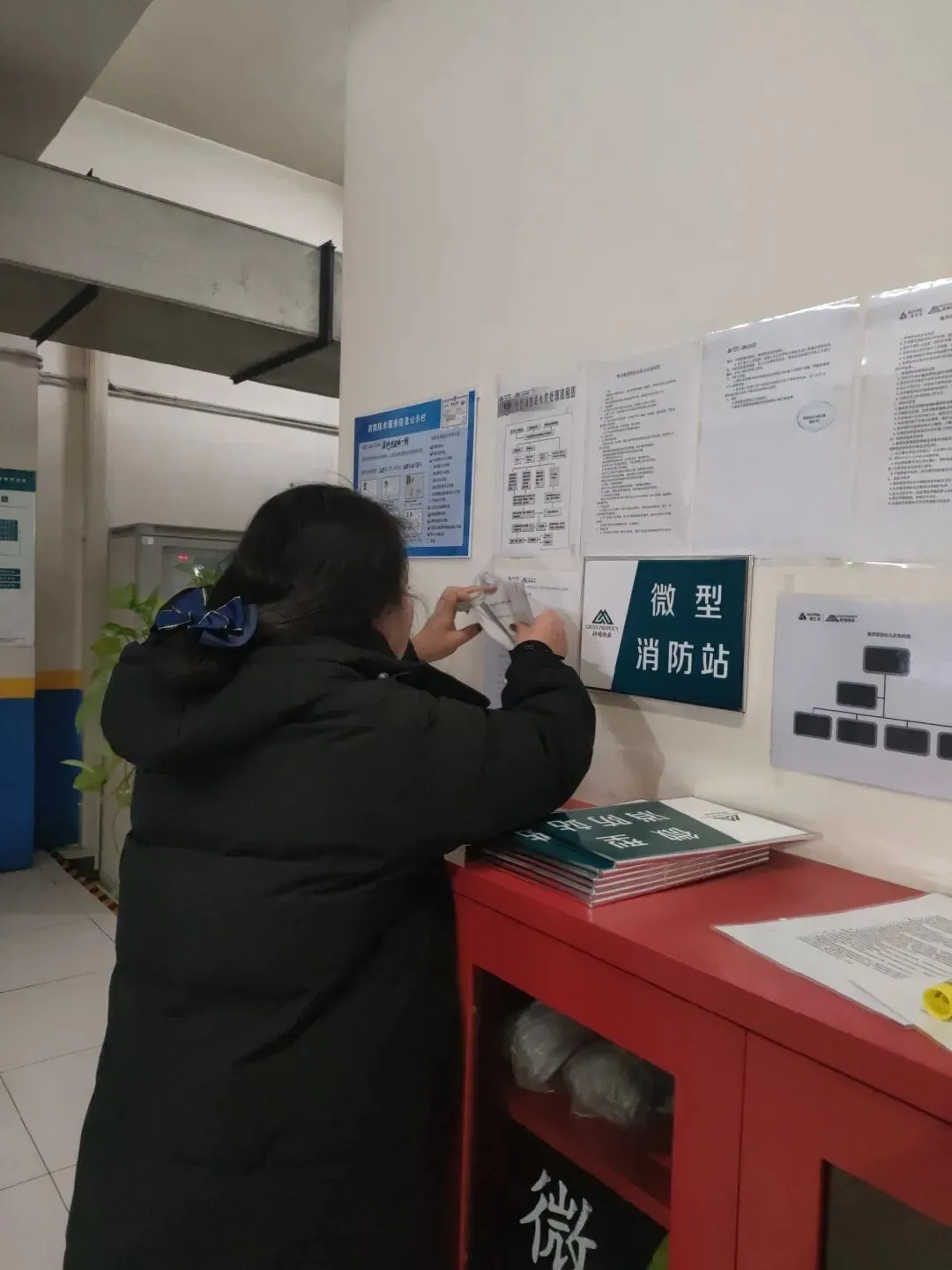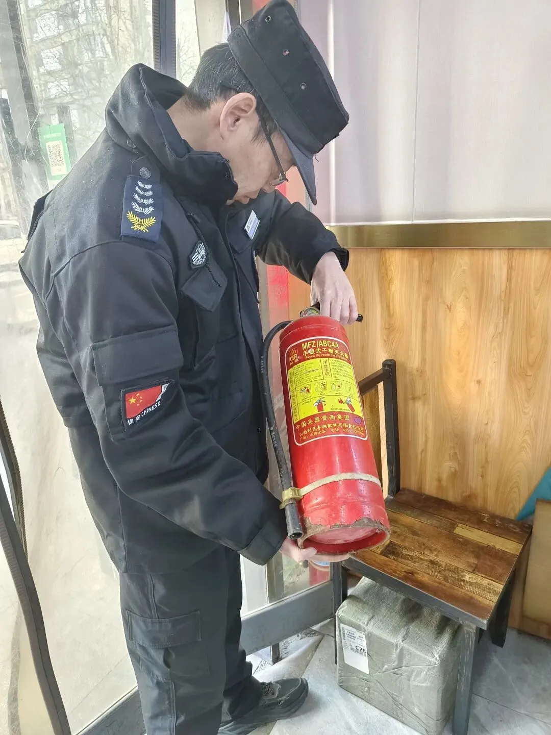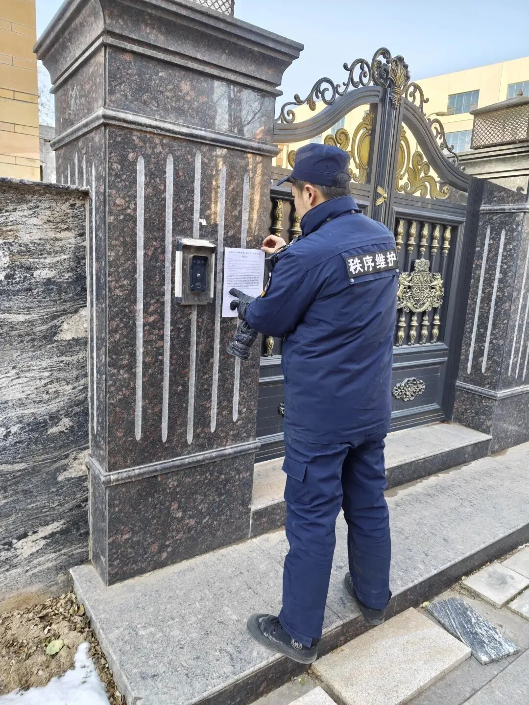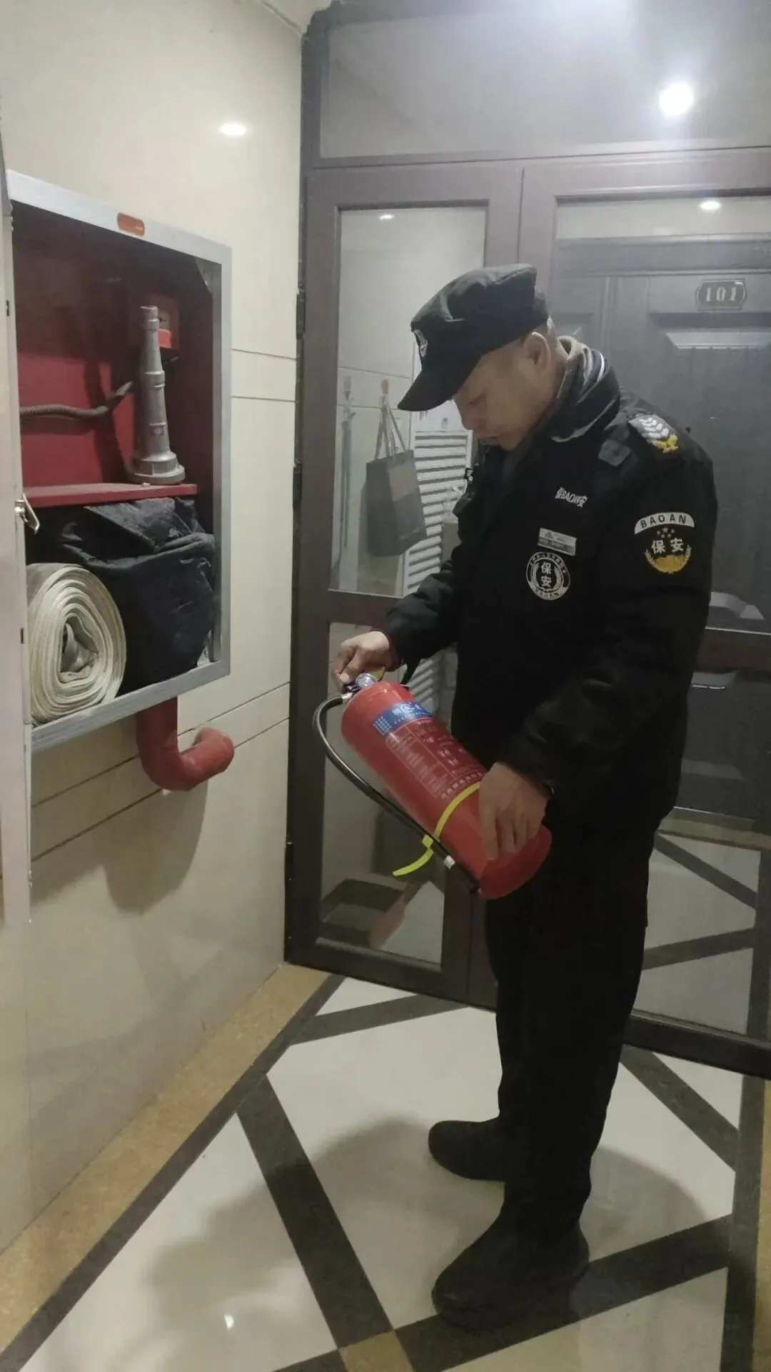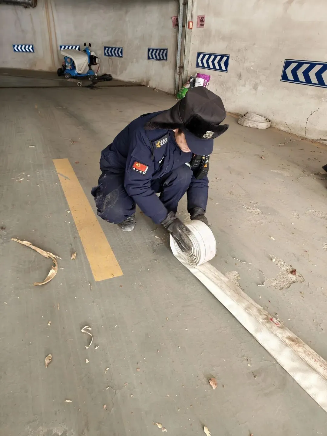 他们每日巡查装修户、张贴规范停车提示、整理消防水带、检查并保温消防器材、门岗登记外来人员、上门送违规整改单、更换灭火器,清理杂物等,全力保障小区安全。