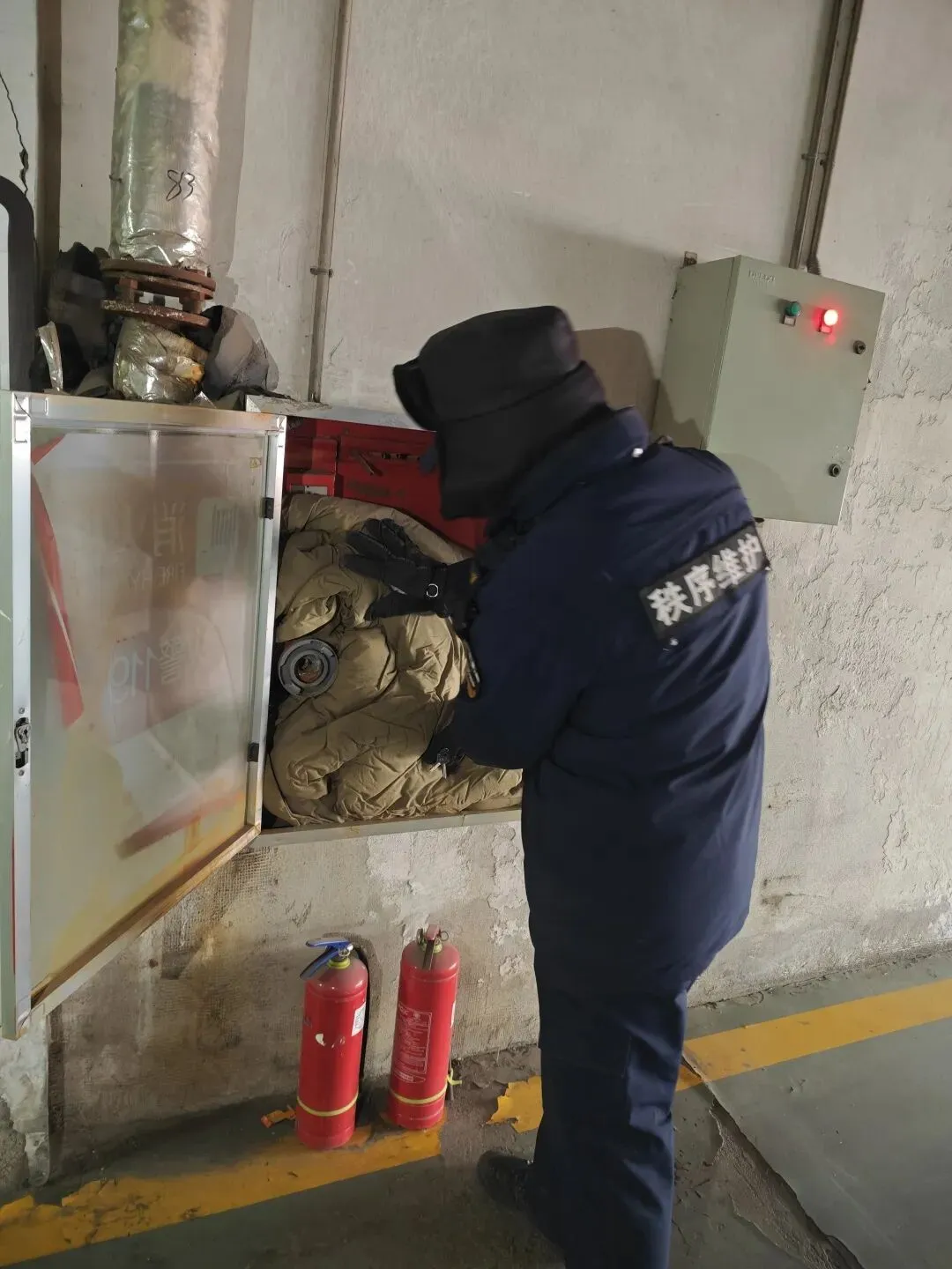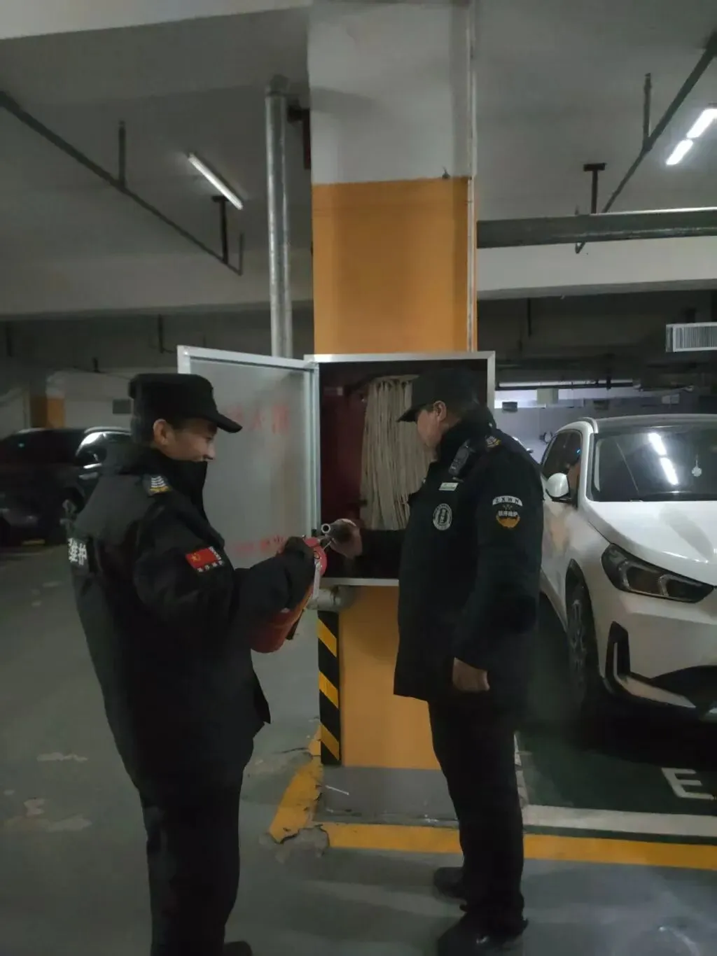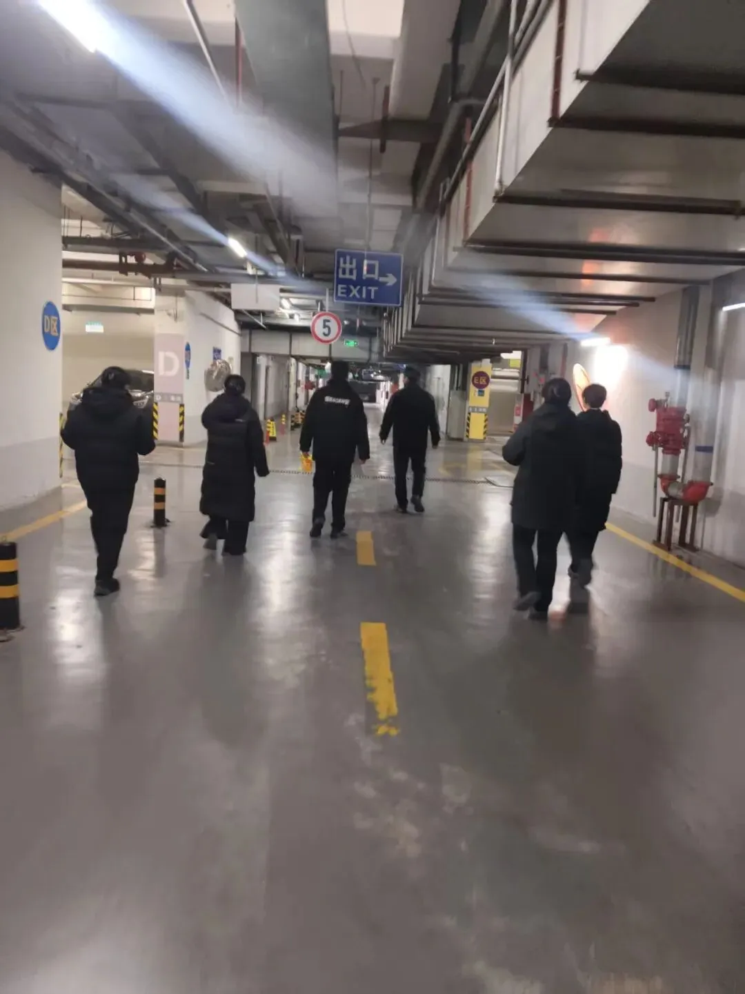 冬夜寒意凛冽,加之春节临近夜间安防压力陡增,秩序部紧盯夜间安防薄弱环节启动专项夜查,加密巡逻、消防设施抽检、出入口值守督查、地下车库安全排查,筑牢夜间安全防线。