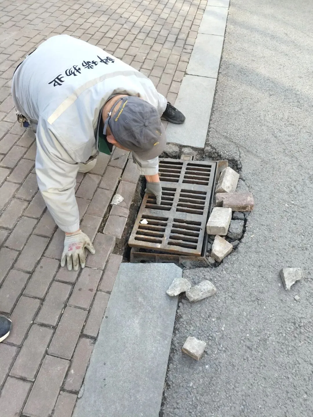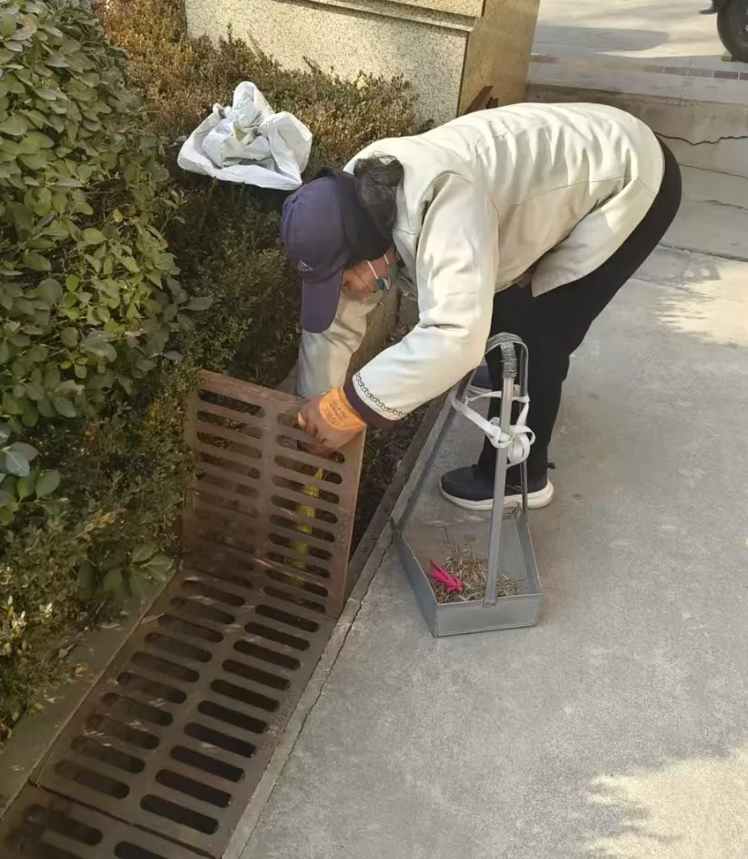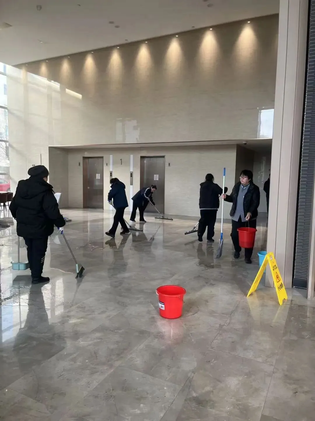 保洁人员清扫园区路面,清理地库口,擦拭单元瓷砖、人防通道栏杆,清理垃圾,帮业主清理下水道返水后家中地面,以点滴行动筑牢园区洁净。