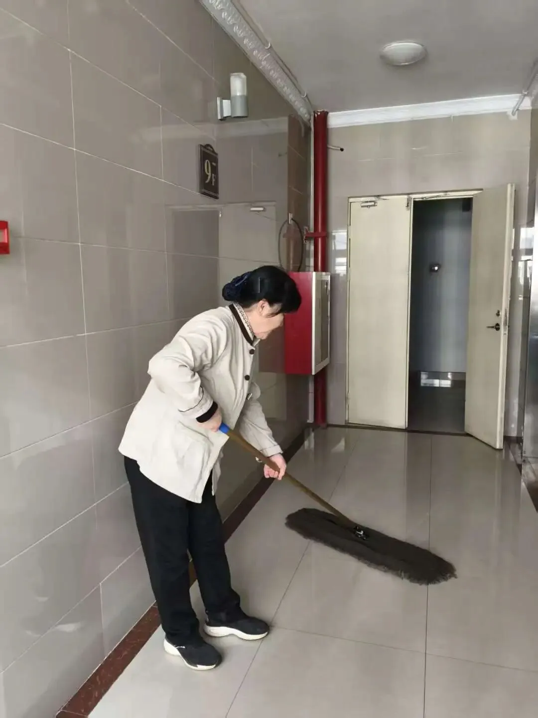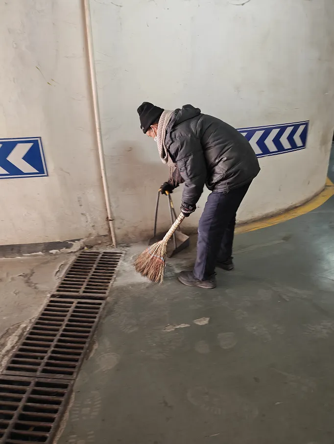 保洁人员每日在楼宇间、园区内忙碌穿梭。他们清扫地面、地下室、楼道,擦拭消防箱、门窗,清理垃圾与雨篦子,不畏寒冷劳累,以辛勤汗水换来小区的洁净与舒适。