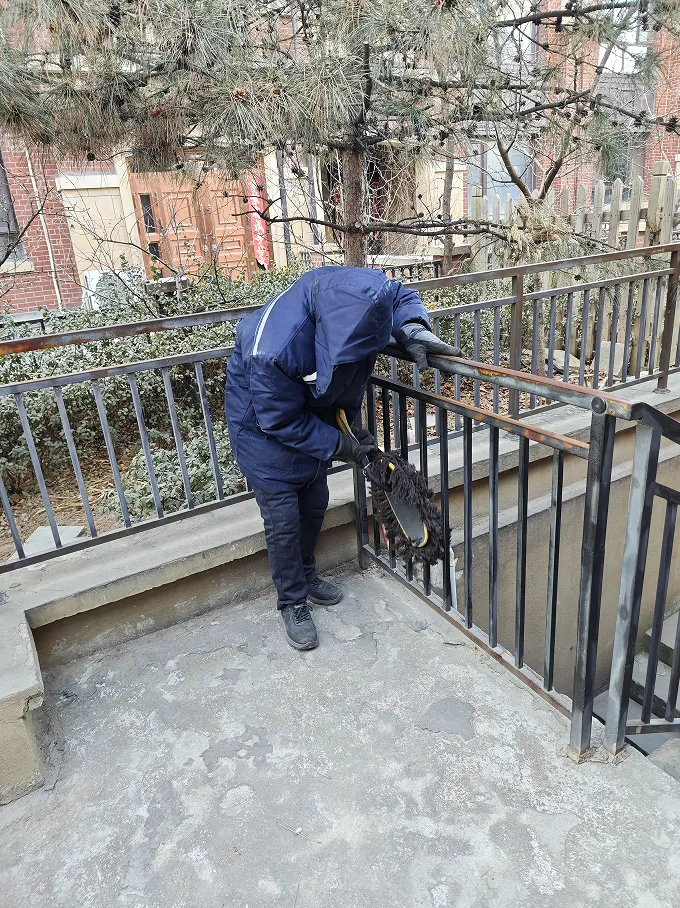 寒冬时节,保洁员坚守岗位开展园区清洁,拭楼道栏杆、地库地面、单元大厅等公共区域,打磨每一处细节,不遗漏边角死角,同时做好园区垃圾清运、日产日清,用双手焕新园区环境。