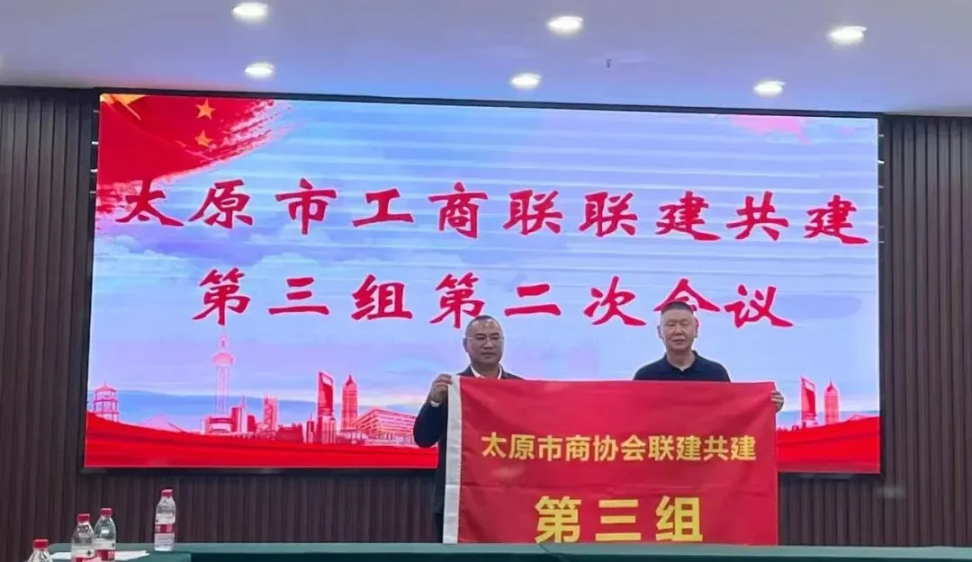 会议最后,联建共建旗帜交接仪式正式举行。太原市商丘商会作为副组长单位,将旗帜郑重交接给黎城商会,标志着第三组联建共建工作迈入新阶段。