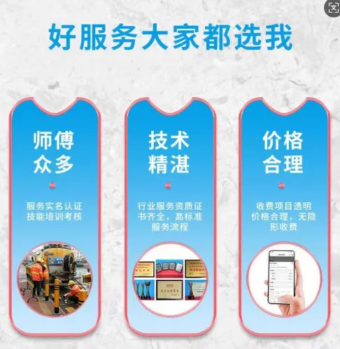 全城区全天候上门服务,专业解决各类管道堵塞问题。师傅上门快速、经验丰富、价格合理,是您身边的管道疏通专家。