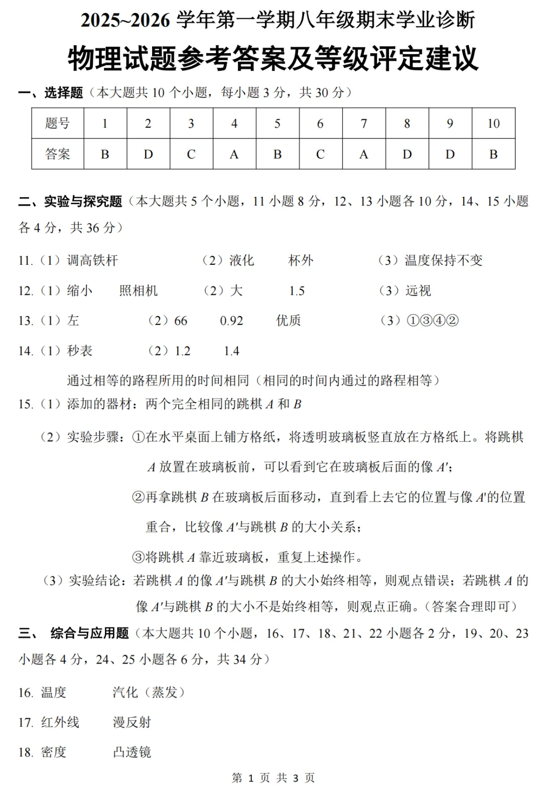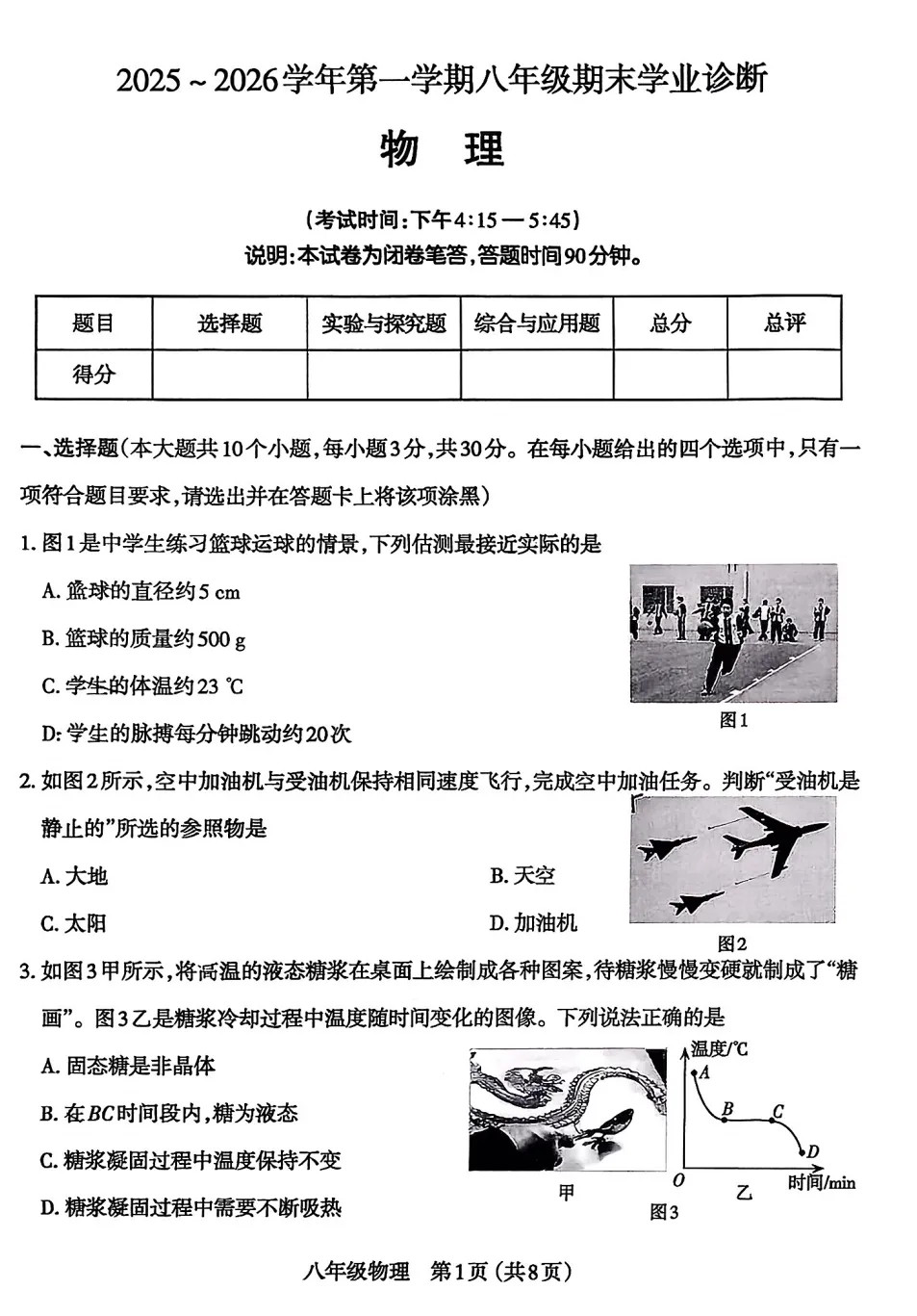 【物理】太原市2025-2026学年第一学期八年级期末学业诊断-物理+答案