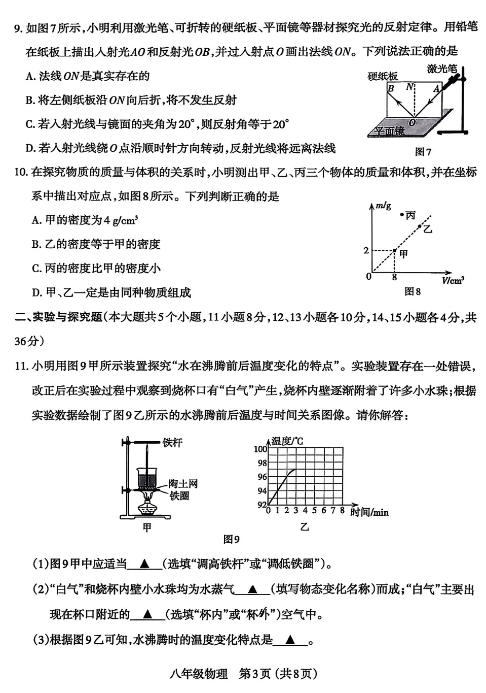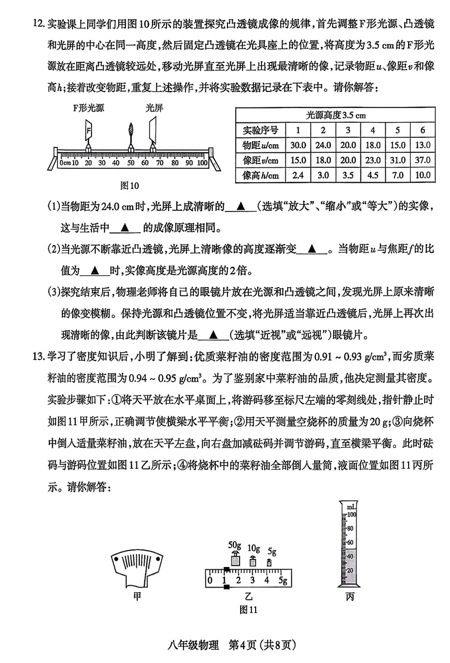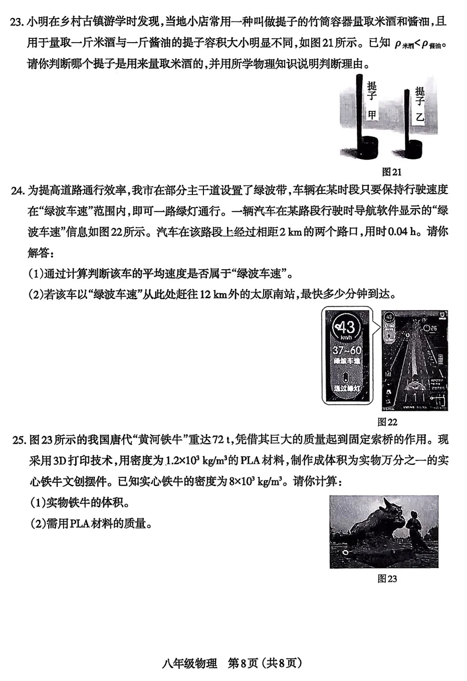 >【物理】太原市2025-2026学年第一学期八年级期末学业诊断-物理+答案