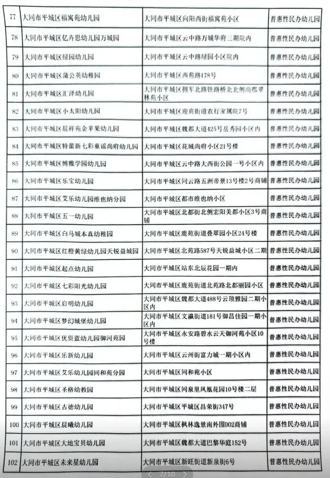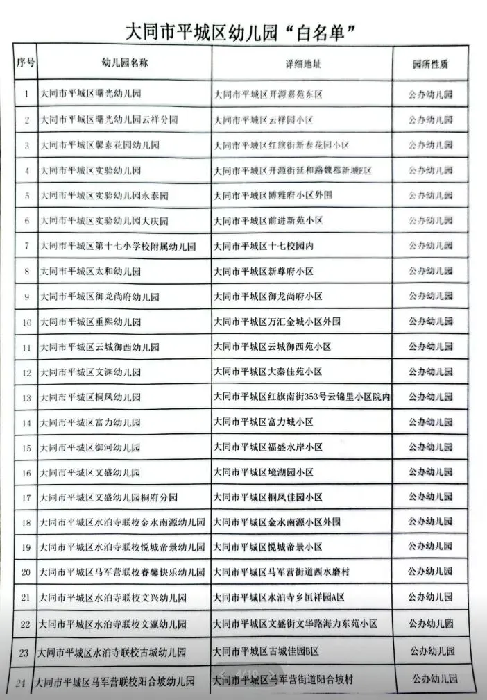 173所!大同幼儿园“白名单”公示!