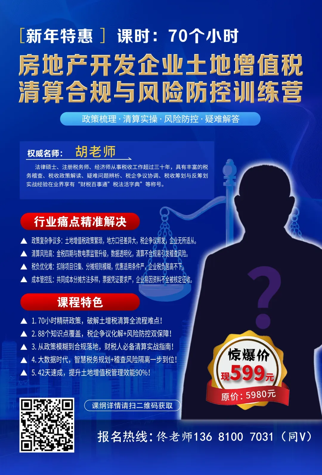 本课程聚焦新法规过渡期窗口,帮助企业精准把握政策变革内核,同时针对企业高频事项进行风险识别及有效控制,进而构建税务风险防控新体系,在合规前提下优化税负结构,为2026年新法落地奠定战略基础。