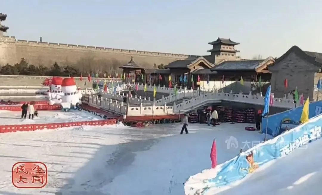 隆冬时节,护城河天然冰面晶莹剔透,宽阔平整的冰场吸引了大批市民前来打卡体验。