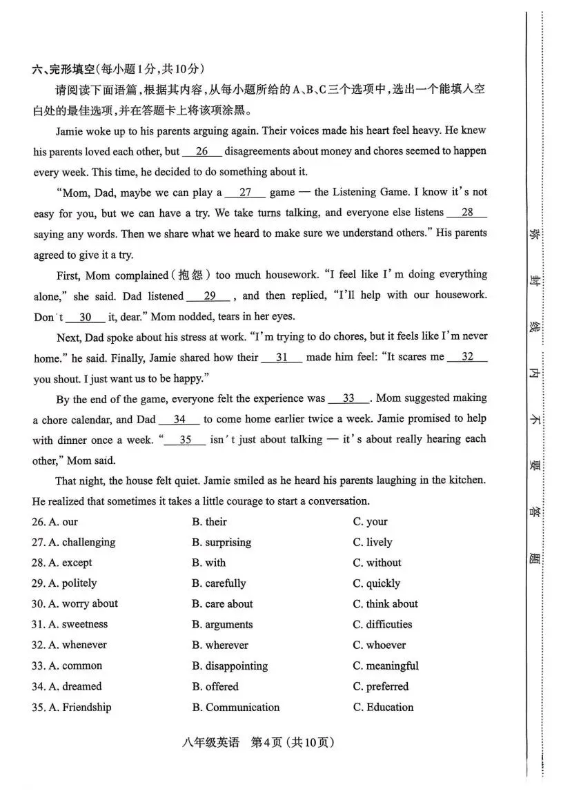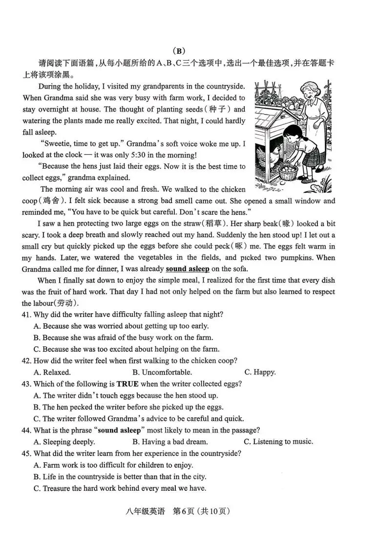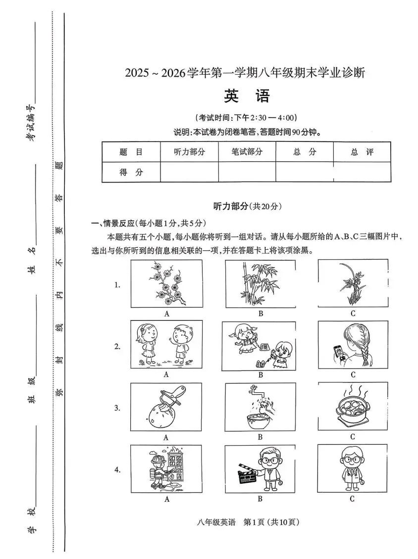 2025~2026学年第一学期八年级期末学业诊断英语试题参考答案