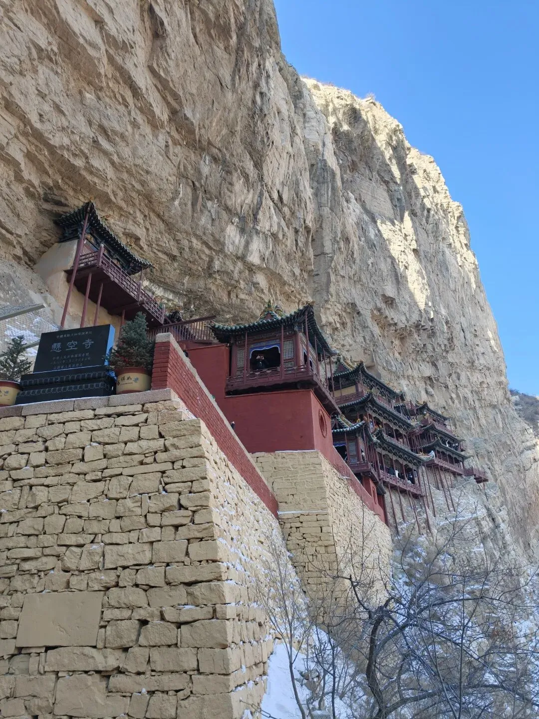 出了大同南站便联系上了定好的包车,第一站,悬空寺。比想象中小,但登临时每迈出一步都在感叹古人的智慧与高超的建造技艺。最让我的意外的,是大同真冷啊!