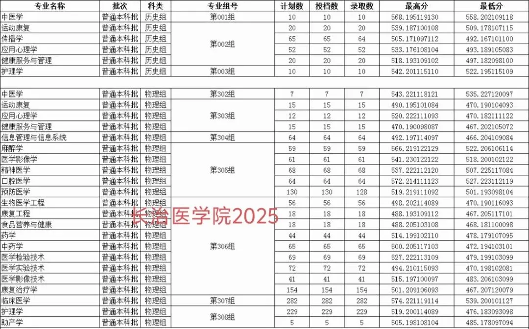 2025年长治医学院投放在本省的专业组划分还比较科学。