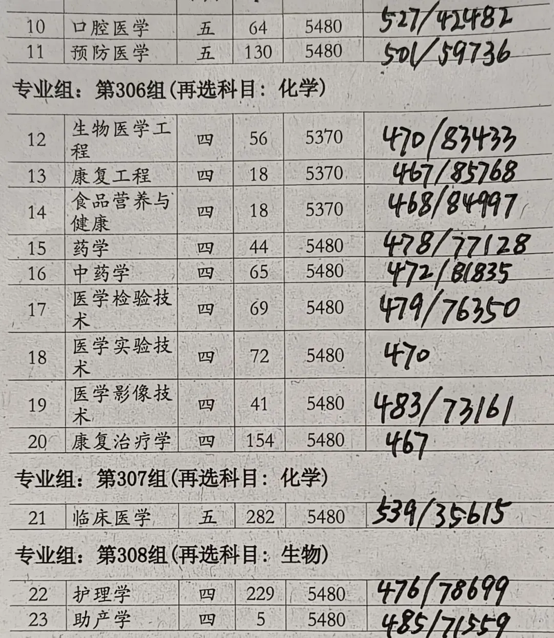 307组只有临床医学1个专业,录取分数539分/省排35615,同位分转换之后比2024年上涨3分。