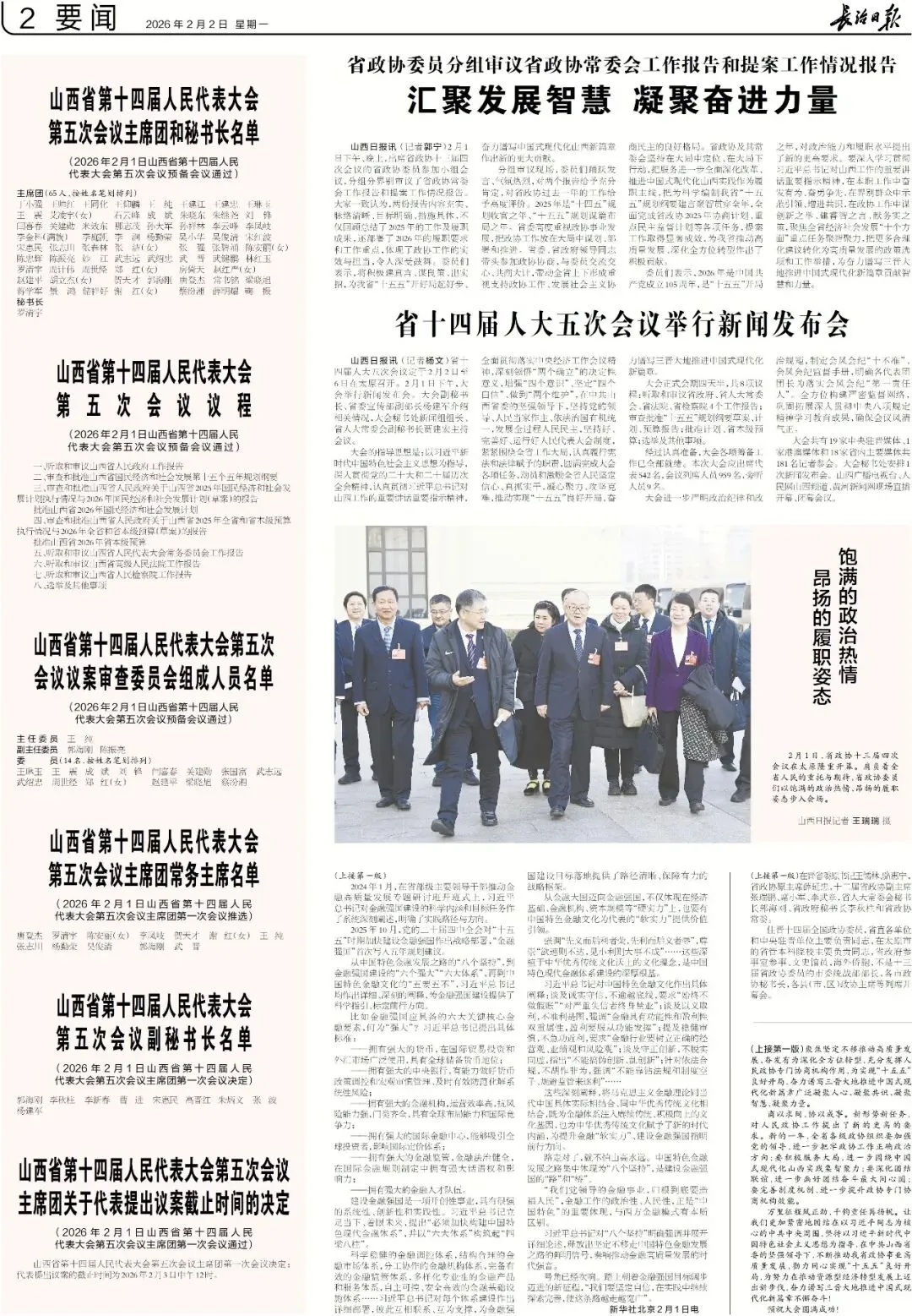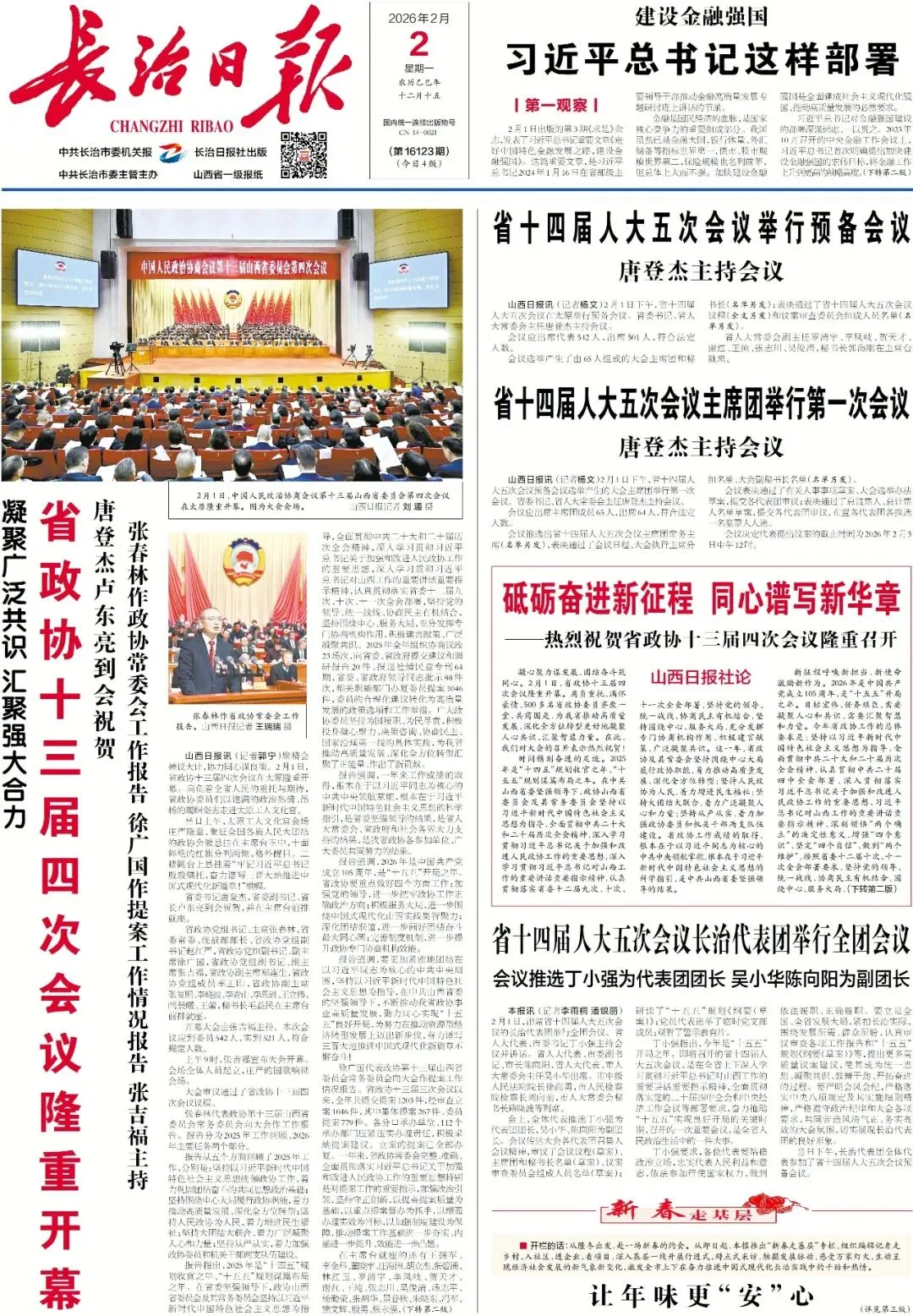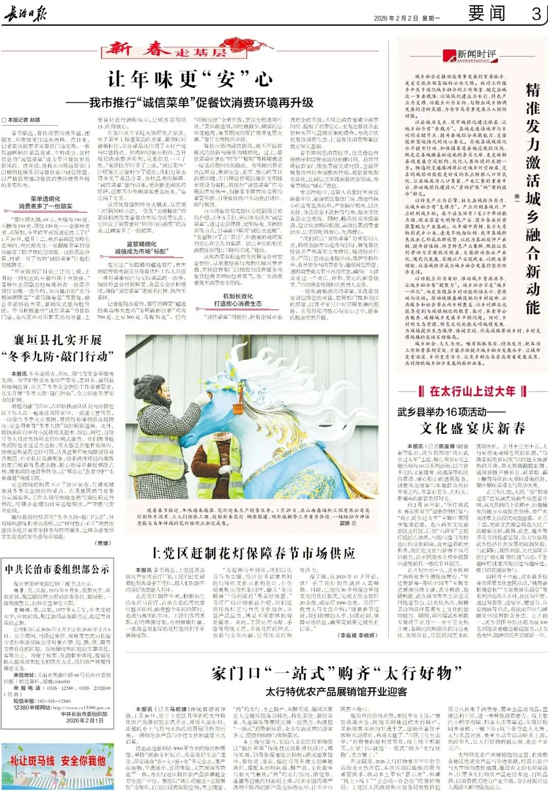 《长治日报》2026年2月2日版面速览