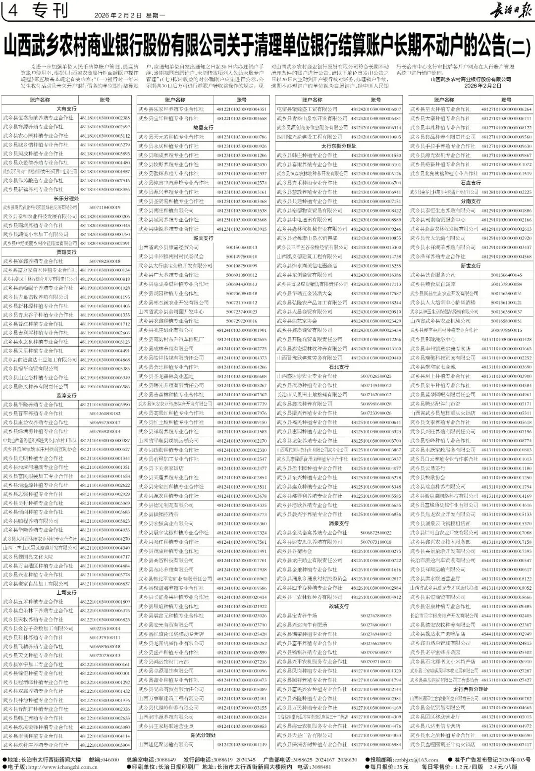 >《长治日报》2026年2月2日版面速览