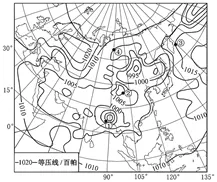 下图为亚欧大陆某时刻海平面等压线分布示意图。完成下面小题。
