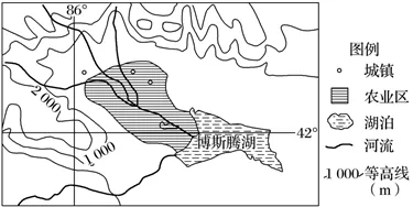 (1)冬季气温低,冰雪融化的少,降水少,使得博斯腾湖水量最小,湖陆热力性质差异最小,湖陆风弱;冬季气温低,湖面结冰,湖陆温差小,湖陆风弱;冬季气候寒冷,气温低,湖区获得的热量少,湖陆温差小,湖陆热力差异小;该地区靠近冬季风源地,受冬季风影响,冬季风实力强劲,冬季风干扰大,湖陆风不显著。