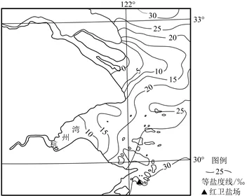 (3)该盐场濒临海洋,海岸线较长,海水资源丰富,地形平坦开阔,利于大规模盐田建设;位于亚热带地区,纬度较低,气温较高,光照充足,蒸发旺盛,利于晒盐;该盐场东面岛屿地势较高,可以减少夏季风带来的降水,也可以减少海风对盐场的破坏;离长江、钱塘江河口较远,受淡水稀释作用弱,海水盐度较高,水质较好。