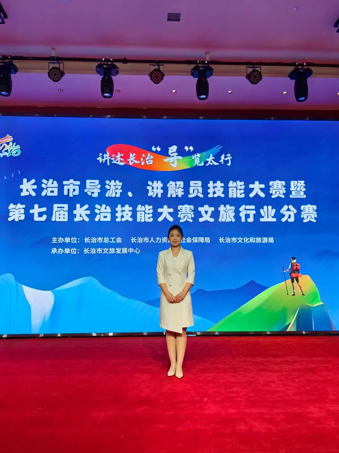 在第七届长治技能大赛文旅行业分赛的舞台上