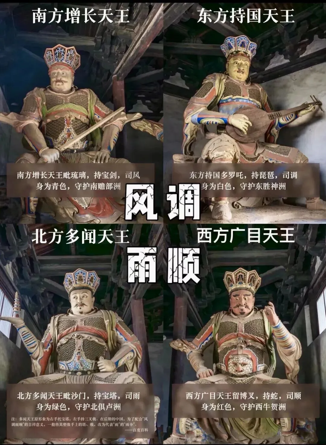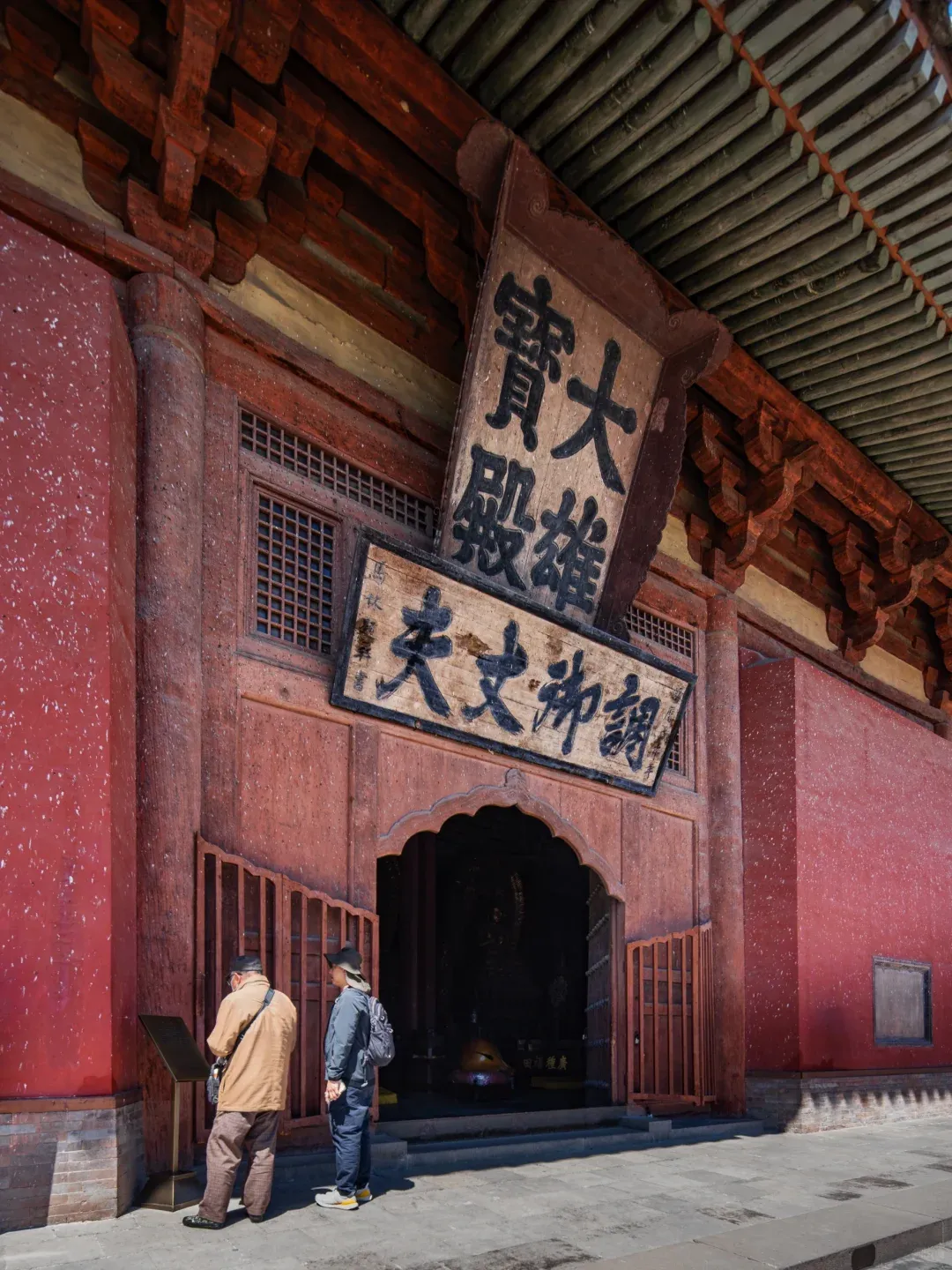 善化寺俗称南寺,大门是落成于金代初年的大型官式建筑,是现存最古老的金代建筑之一,更是我国屈指可数的殿堂式木构建筑,免门票,景区门口预约凭预约码进去即可,寺内主要参观为天王殿、三圣殿、大雄宝殿、普贤阁,◆大雄宝殿,辽金建筑,内有五方佛从东到西依次为东方阿閟佛、南方宝生佛、中央毗卢遮那佛、西方阿弥陀佛、北方不空成就佛。◆山门四大天王,在天王殿是明代塑像,天王的“表情包”太有意思了特别逗。