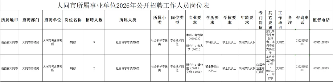 附件:大同市考古研究所2026年公开招聘工作人员岗位表.xlsx