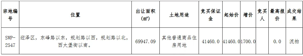 宗地面积69947.09平米,其他普通商品住房用地,起拍价41460万。流拍。