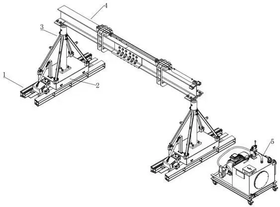 专利摘要显示,该发明公开一种模块化组装式液压顶升门式起重机,包括:轨道装置,包括左轨道和右轨道;行走装置,其数目为两个,分别可移动设于左轨道和右轨道上,包括动力单元和行走车,所述动力单元可置换地连接于所述行走车上,用于驱动行走车沿着所述轨道装置移动;支撑装置,可拆卸设于所述行走车上;横梁,可拆卸设于所述支撑装置上;其中,所述轨道装置、行走装置、支撑装置和横梁均为模块化结构,能够根据需要进行适配性调整组装,所述动力单元相对轨道装置的驱动摩擦力可调节。该起重机能够在高楼层室内及其他空间受限的场景高效便捷地完成人工安装、吊装作业及拆卸转场,且驱动摩擦力可精准高效调节,能够实现高效安全的起吊负载。