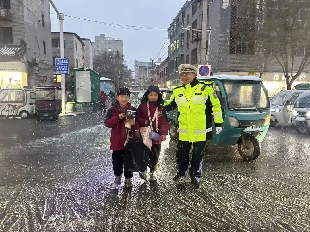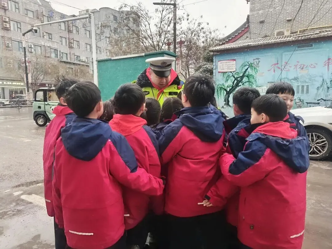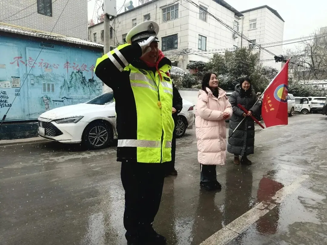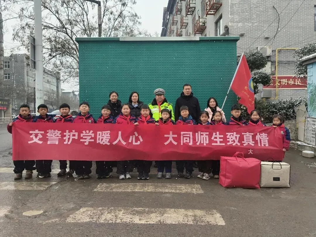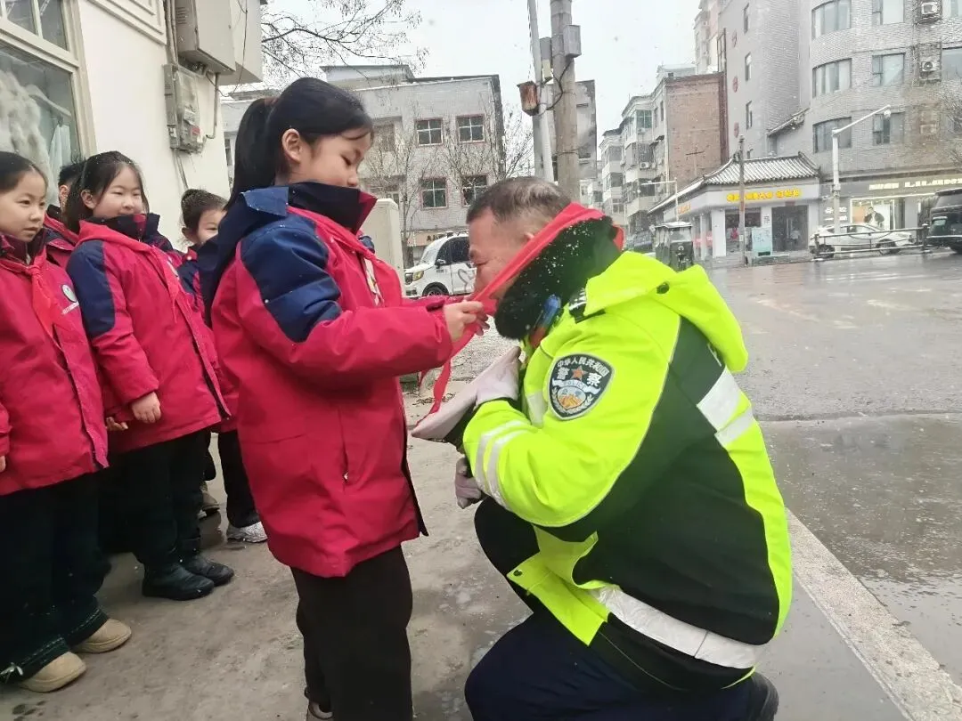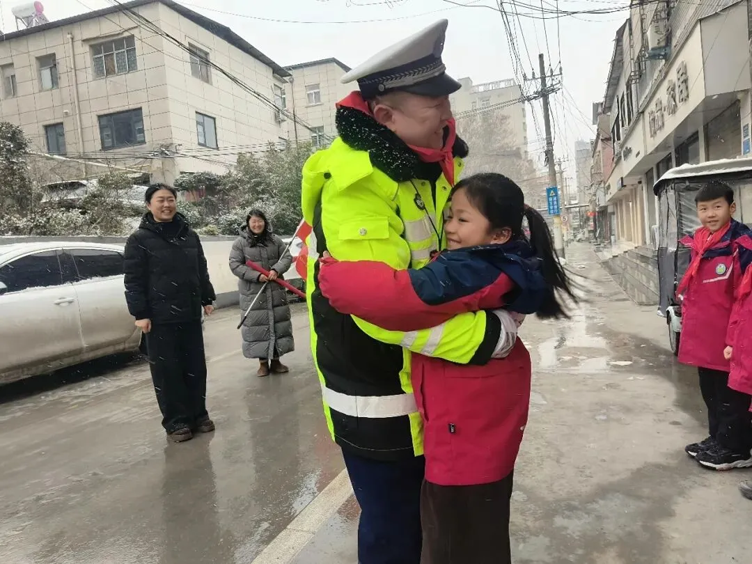 系上红领巾的那一刻,孩子们纷纷上前,给了许湘峰交警一个大大的、真情的拥抱。一句稚嫩的“交警叔叔,您辛苦了!”,让平日里坚守岗位的许交警脸上露出了温柔的笑容,心中满是暖意。简单的话语,真挚的拥抱,化作冬日里最暖的光,在护学岗的路口静静流淌。