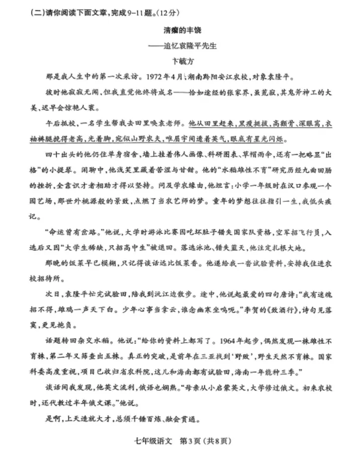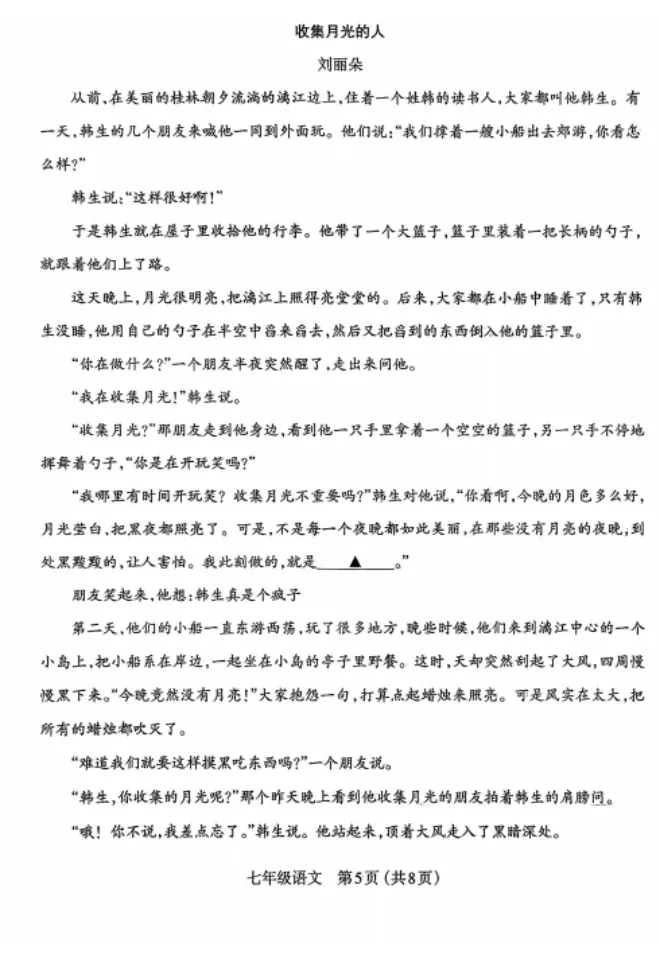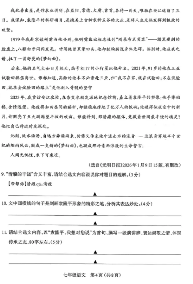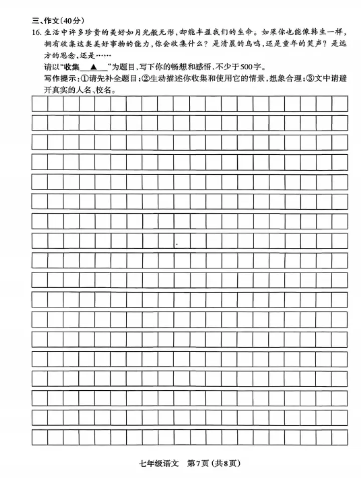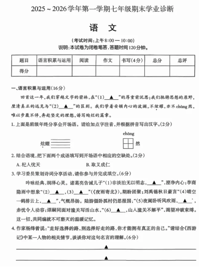 >【阶段测试】太原市2025-2026学年第一学期七年级语文期末学业诊断试题(含答案)