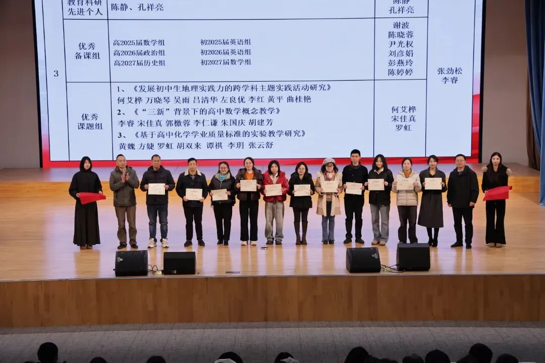 大会伊始,对2025年度教育教学和服务育人工作者取得突出成绩的优秀教职工和优秀备课组、优秀课题组进行了表彰。