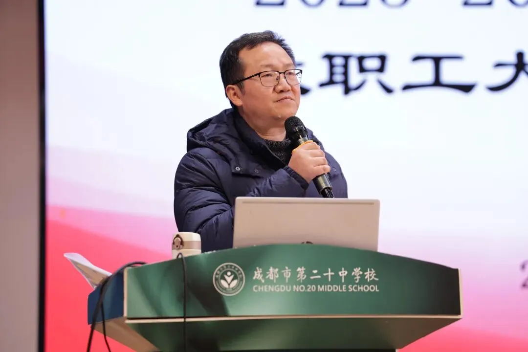 会上,副校长张劲松作了“凝心聚力守初心 砥砺奋进迎新年”主题讲话。他首先回顾了2025 成都二十中在教学质量、拔尖创新、教育科研、教师专业发展、特色发展与素养培育等方面取得丰硕成果。接着,从锚定“双减”,深化与新课标落地,全面推进高质量发展;聚焦课堂提质,实施“精准教学”改革,构建智慧课堂范式;扩大特色优势,打造人工智能教育高地等方面,对2026年学校重点工作部署。还对寒假师德师风建设和安全工作提出新要求。