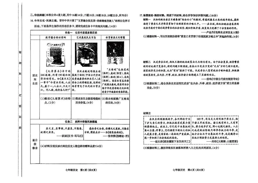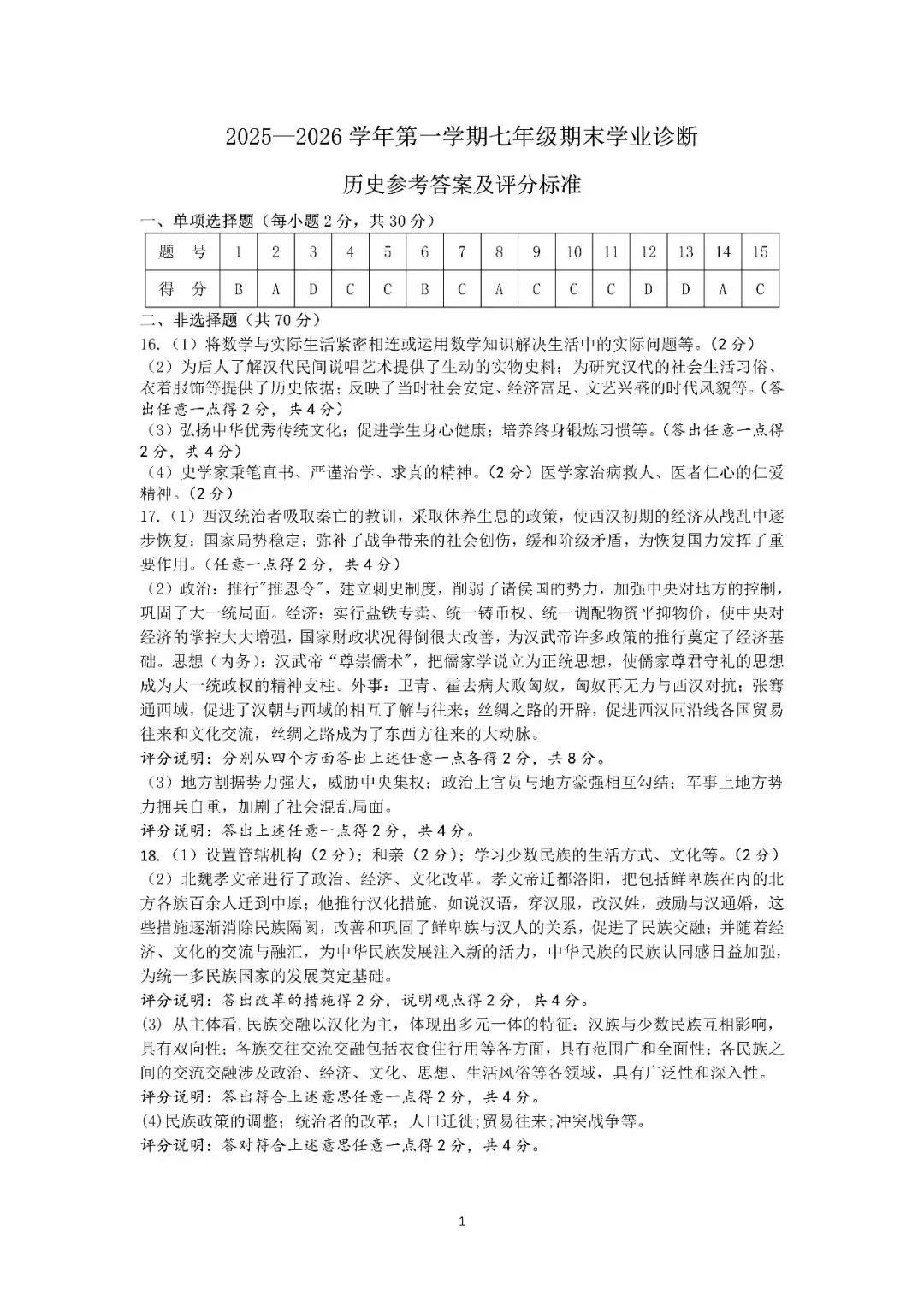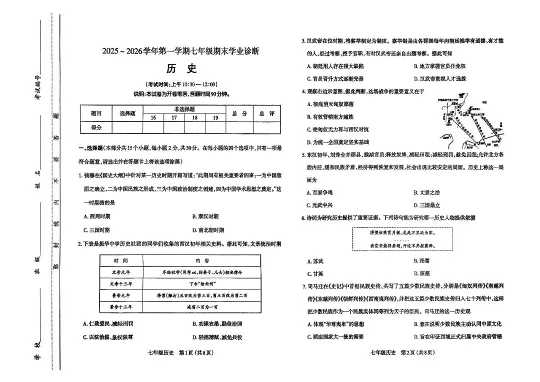 >太原市2025-2026学年第一学期七年级期末学业诊断历史