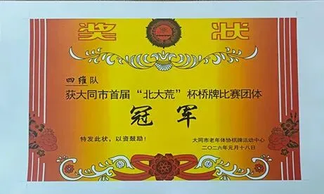 桥牌运动素来以其益智性、策略性与协作性闻名,此次首届“北大荒”杯桥牌比赛,不仅为我们全市桥牌爱好者搭建了一个交流切磋、展现自我的优质平台,更让这项小众而有深度的运动得到了进一步的普及与推广。赛事自筹备以来,便得到了北大荒绿色食品超市与大同市桥牌协会的悉心组织与全力保障,从赛场布置到赛程安排,每一个细节都彰显着主办方的用心与严谨。作为参赛选手,在赛场上与搭档默契配合、凝神思索,每一次叫牌、每一轮出牌,都是一场脑力与心态的双重博弈,既有旗开得胜的喜悦,也有错失良机的遗憾,但无论胜负,每一场对决都选手们积累了经验、提升了技艺,更懂得了协作与包容的重要性——桥牌从不是一个人的战场,唯有信任搭档、统筹规划、冷静应对,才能在方寸牌桌上展现出最好的自己,这与我们为人处世、干事创业的道理何其相似。