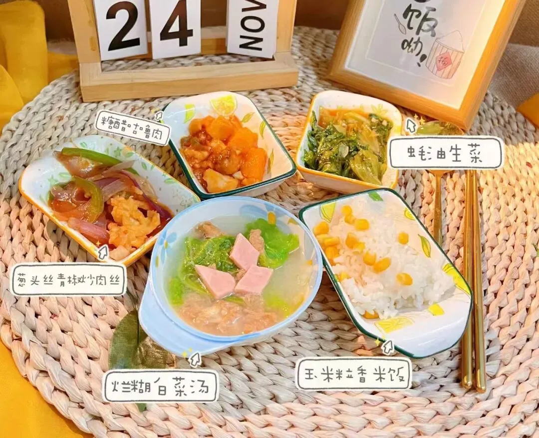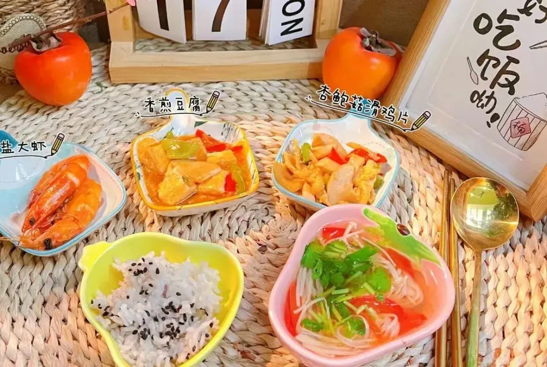 营养搭配的三餐两点。美味可口的饭菜都是出自我们幼儿园食堂师傅之手,确保我们的孩子们吃到的都是干净卫生营养均衡的食物。