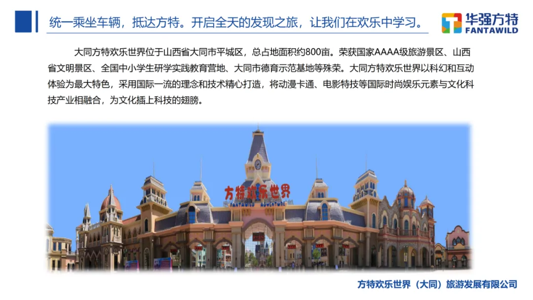 往返交通费用、方特欢乐世界通票、专业导师和领队服务费用、活动物料费用、保险费用。