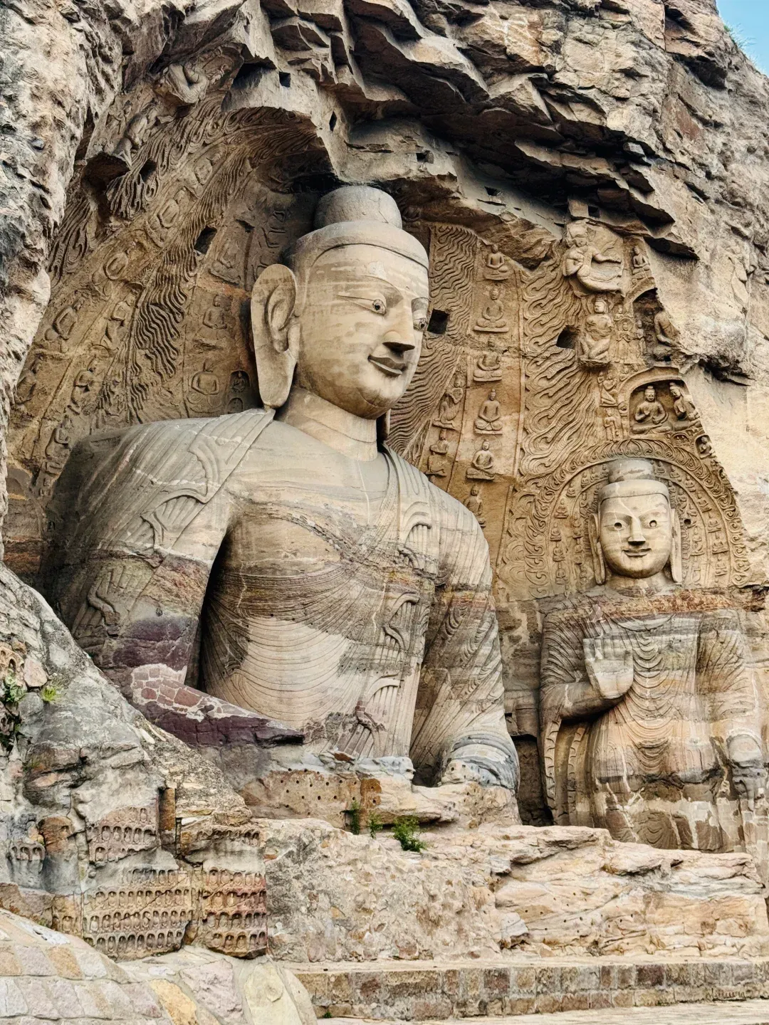 云冈主洞看完,旁边小洞细看,线条更清,故事更多。