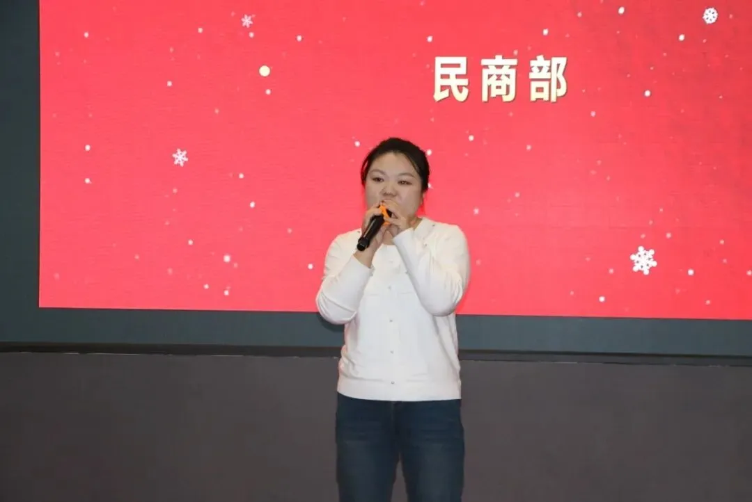 创研部《爆竹声声响》的灵动舞姿,拉开汇演序幕,瞬间点燃全场热情,新春喜悦扑面而来;司法辅助中心经典歌曲串烧,以共鸣旋律唤醒集体记忆,全场齐声合唱,暖意与欢笑声交织;民商部一曲《清白之年》,用温柔唱腔诉说初心坚守,尽显赤子之心;不动产部朗诵《公证人的使命》,字字深情、句句铿锵,道尽公证人的使命担当,直抵人心;金融部《不再犹豫》歌声激昂,唱响无畏前行的奋进之声;办公室与创研部合唱《有点甜》,甜暖氛围浸润全场,尽显团队温情;最后,创研部几位伙伴以一首《最初的梦想》压轴,熟悉的旋律缓缓流淌,让在场每一位同仁重温初心、凝聚共识,更坚定了携手并肩、砥砺前行的信念,为整场表彰会文艺环节画上了温暖而有力量的句号。