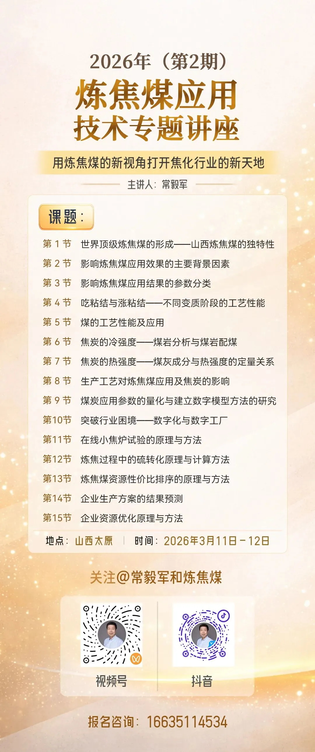 >3月太原|2026年(第2期)炼焦煤应用技术专题讲座