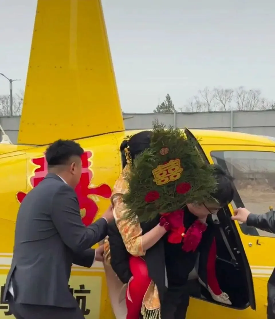 太原一对新人结婚,租用直升机接亲(来源:受访者)
