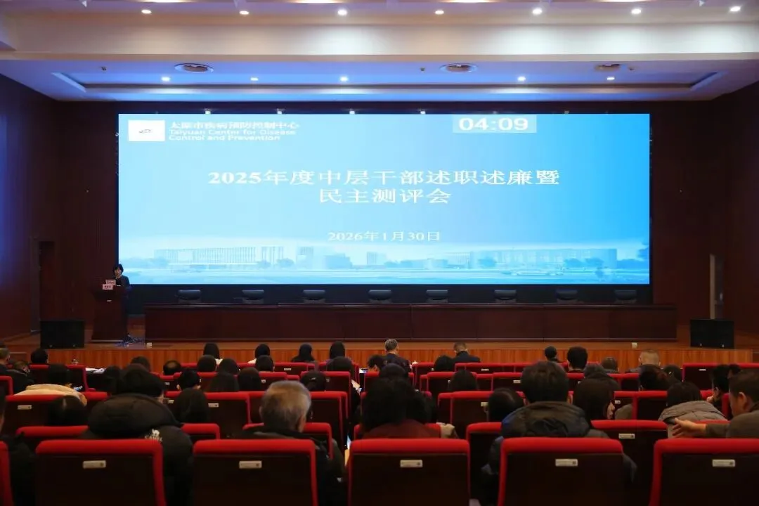 1月30日,太原市疾控中心召开2025年度科室负责人述职评议会,中心33个科室的负责人依次现场述职,全面汇报了过去一年在履行职责职能、重点工作推进、能力建设及团队管理等方面的情况与成效。