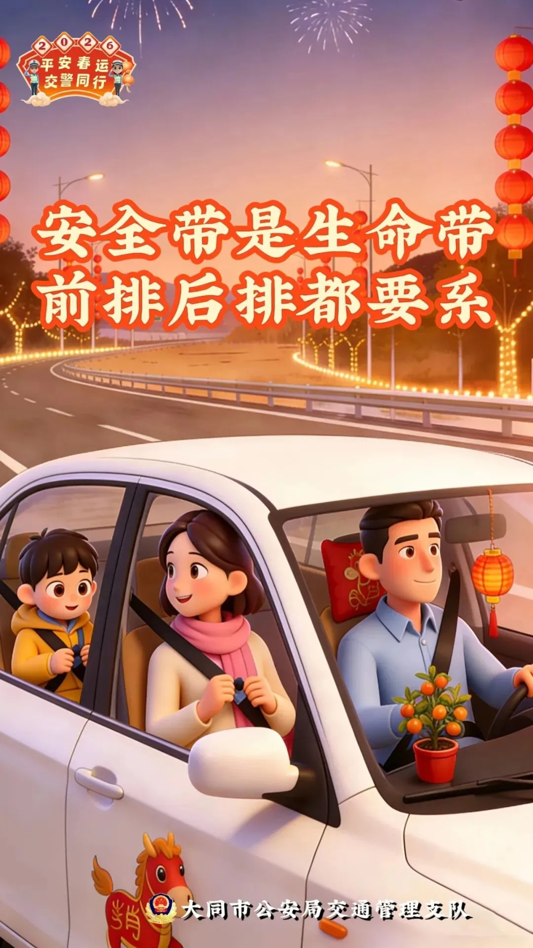 春运模式已开启!不管是自驾开小车,还是骑乘电动车,回家的路再急,安全都不能 “缺席”。大同交警特意准备了 6 张马年春运安全海报,把最实用的安全知识点藏在卡通画面里 —— 喝酒别驾、减速慢行、全员系安全带…… 每一句都是贴心叮嘱,快码住转发,让平安伴你过大年!