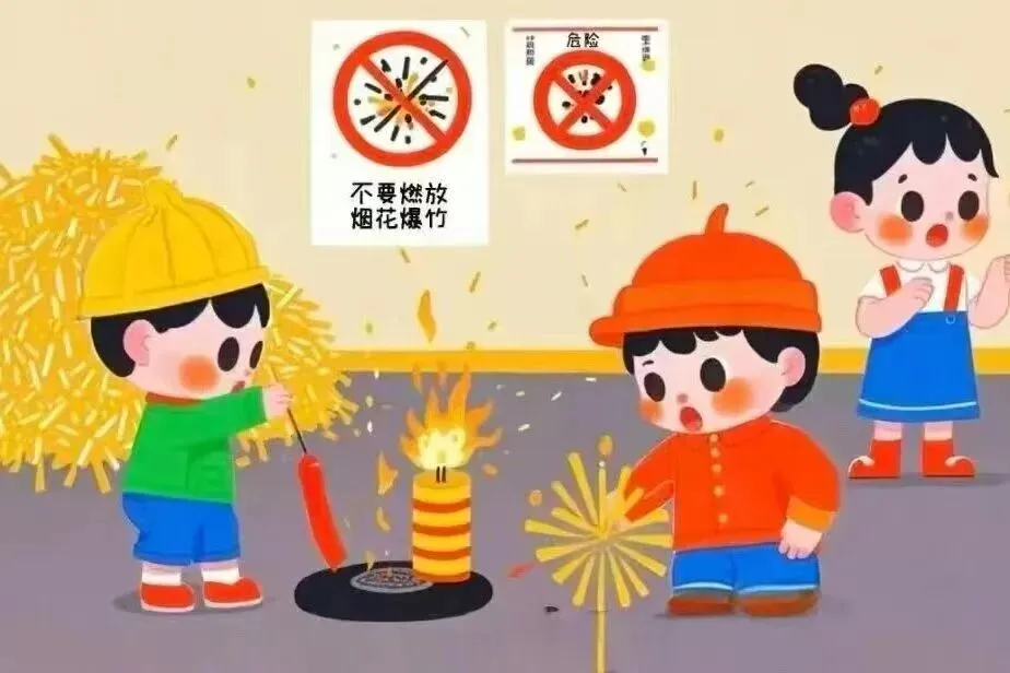 春节燃放烟花爆竹一定要在可燃区域内并在成人的陪同下进行,避免烧伤炸伤。不要让孩子放一些威力比较大的烟花。不要将烟花、鞭炮放在封闭的容器中燃放。