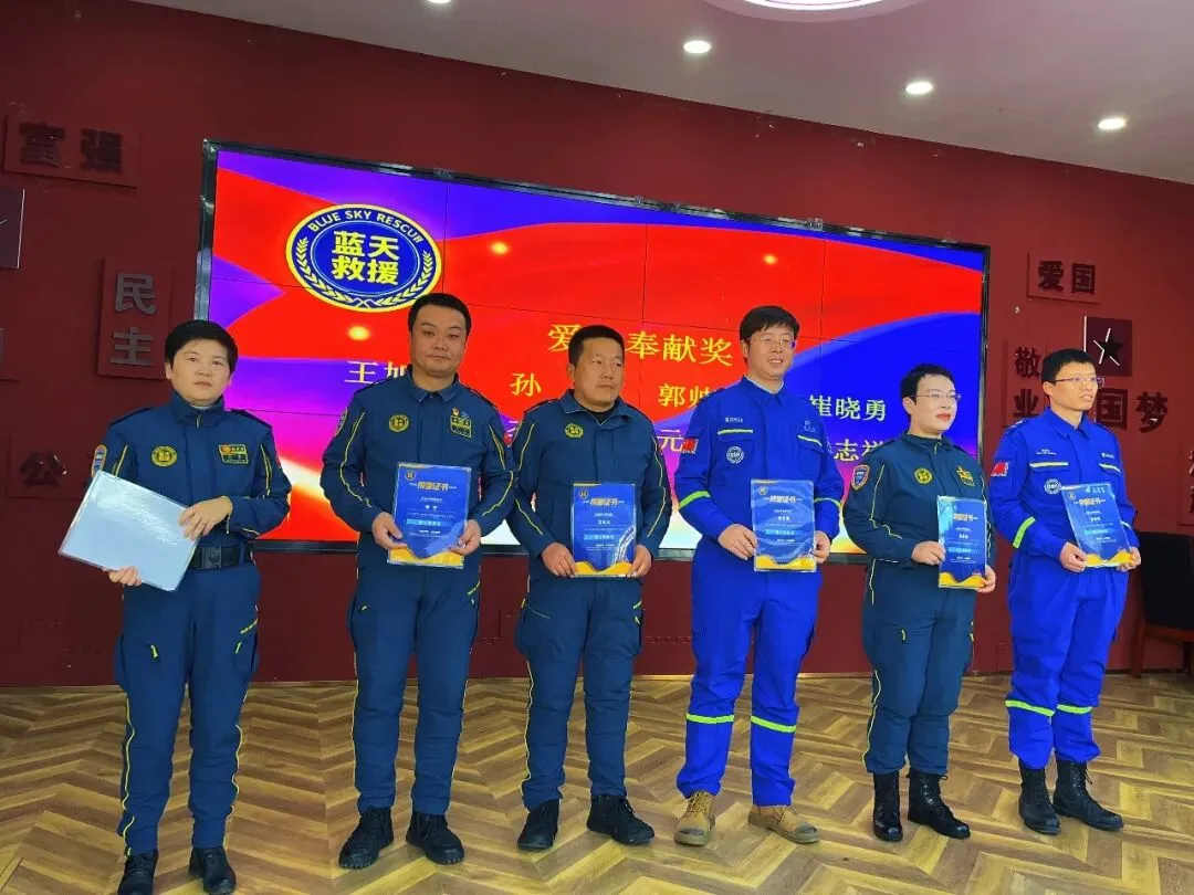 随后颁发的“爱心奉献奖”与“优秀队员奖”,致敬那些慷慨解囊助力救援行动、凭借过硬专业技能始终冲锋在前的伙伴。他们用实际行动,深刻诠释了蓝天人的奉献精神与职业担当,成为队伍前行路上的榜样力量。